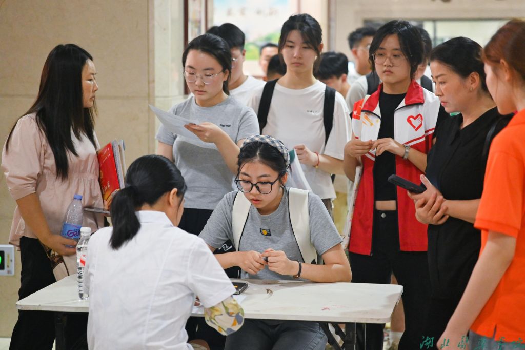 迎新期间,我校在十堰站、十堰东站、武当山机场、三堰客运站均安排接站专车,方便新生入校。在校内,为确保报到流程高效、有序,学校优化车辆通行线路,安保人员快速引导车辆通行,协助行李搬运,保障校园交通顺畅。为避免人员聚集、提升报到效率,我校在科教楼一至三楼分区域设置服务点位,涵盖色觉检查、现场缴费及“绿色通道”咨询办理等。校内各迎新展位前,工作人员耐心解答新生疑问,身穿红色志愿服的学长学姐引导新生办理入学手续。宿舍24小时对新生开放,确保新生顺利入住。今年,我校在报到现场放置了一块全新开发的AI数字人“湖小医”的大屏幕,新生可直接与数字人“对话”,便捷了解包括入学报到、学习生活等情况。