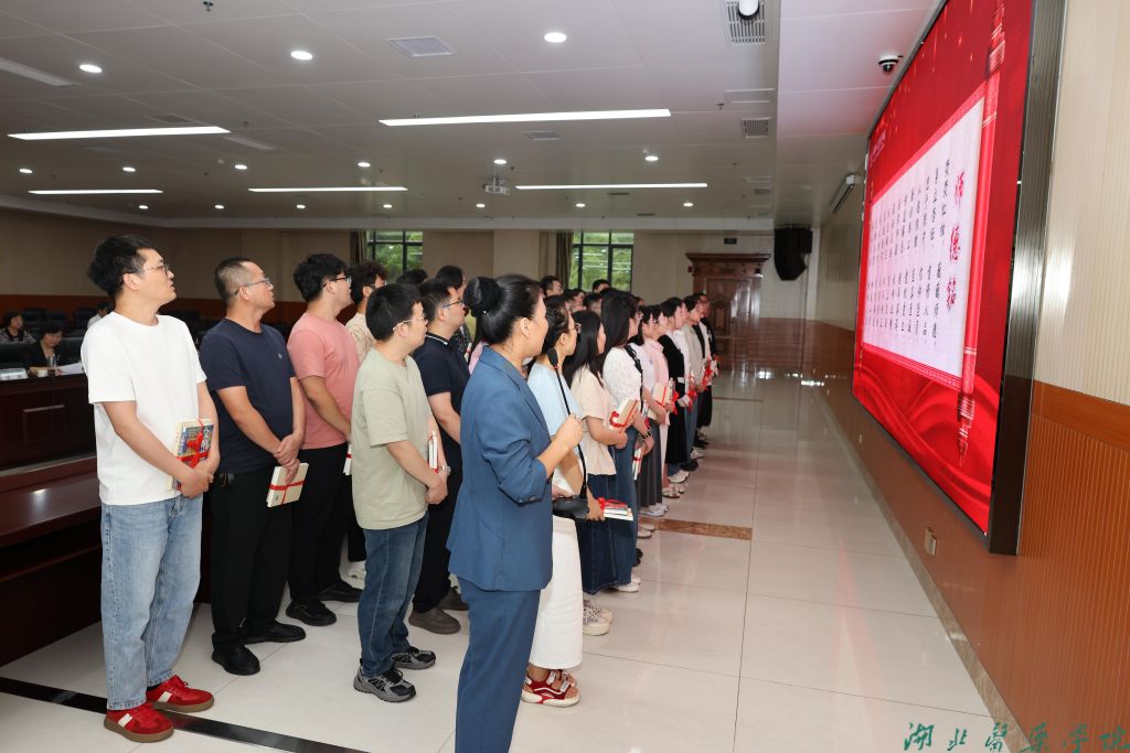 随后,在谭艳的领诵下,全体新教师齐声朗诵《师德铭》,用铿锵誓言表达投身教育事业的坚定决心。
