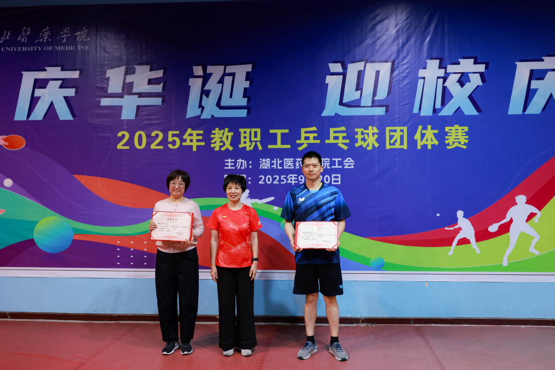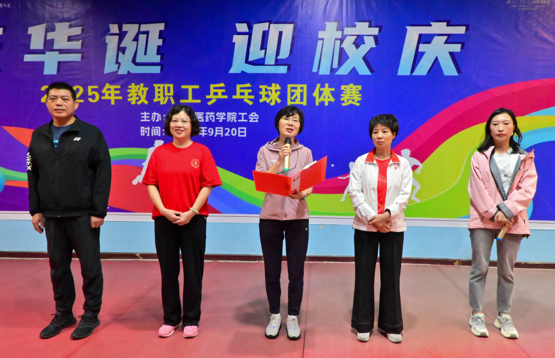 本网讯(通讯员 唐念东)金秋送爽,丹桂飘香。为庆祝中华人民共和国成立76周年暨湖北医药学院建校60周年,进一步丰富教职工文化生活,增强团队凝聚力,展现我校教职工积极向上的精神风貌,9月20日,由校工会主办的2025年教职工“庆华诞 迎校庆”乒乓球团体赛在学校乒乓球馆隆重举行。校党委书记郑丹凤出席开幕式并致辞,校党委常委、副校长严世荣宣布比赛开始。各分工会组成的13支代表队、近130名教职工运动员参加了本次比赛。