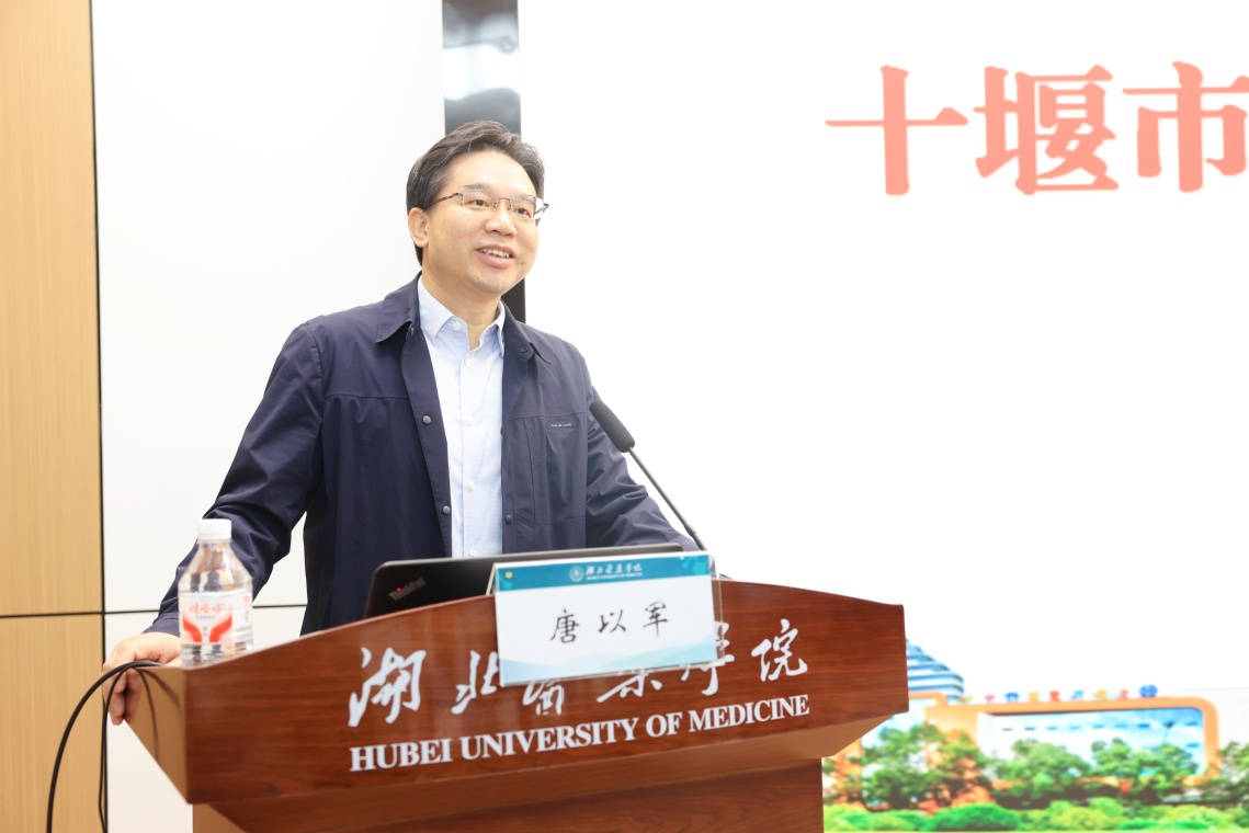 罗杰校长致辞后,直属附属太和医院党委书记唐以军介绍医院与学校第一临床学院 “医教协同” 格局。作为直属附属医院,双方坚持 “临床与教学相融、科研与诊疗互促”,既是区域重症诊疗 “主力军”,也是医学人才培养 “主阵地”。他提及医院拥有多个国家级、省级临床重点专科,年门诊量超300 万人次;学院依托医院构建 “理论 - 实践 - 临床” 一体化培养体系,近五年培养超 2000 名医学人才;双方联合打造的湖北省肝癌精准诊疗临床医学研究中心等平台,在肿瘤防治、干细胞应用等领域获突破,实现 “医教研” 良性循环,为区域医疗事业提供支撑。