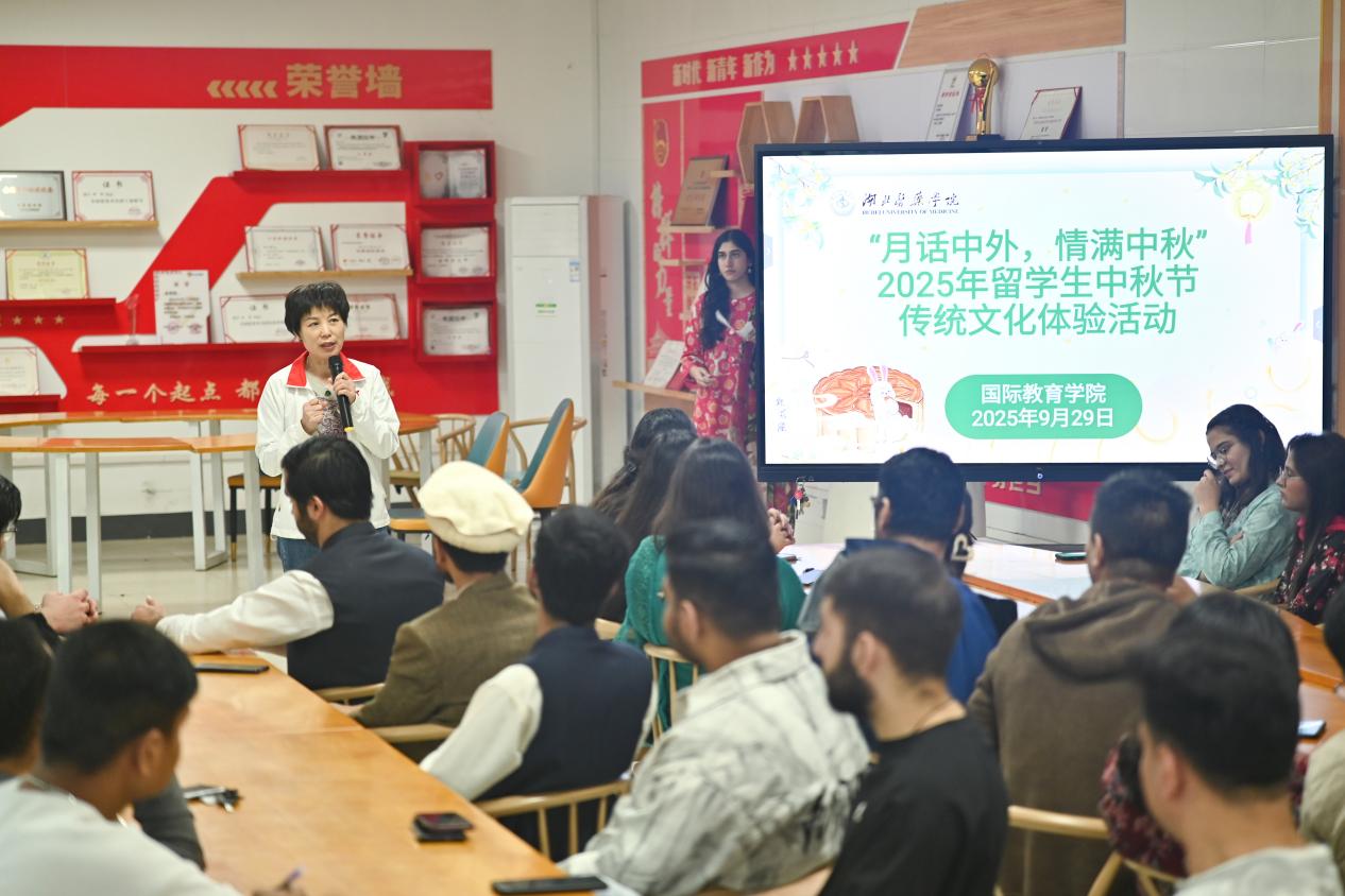 随后,活动在中秋节文化主题视频拉开序幕,通过生动的画面与通俗的解说,从中秋的历史渊源、各地民俗到现代传承,全方位呈现节日文化图景,让留学生直观且趣味地理解中秋文化脉络。