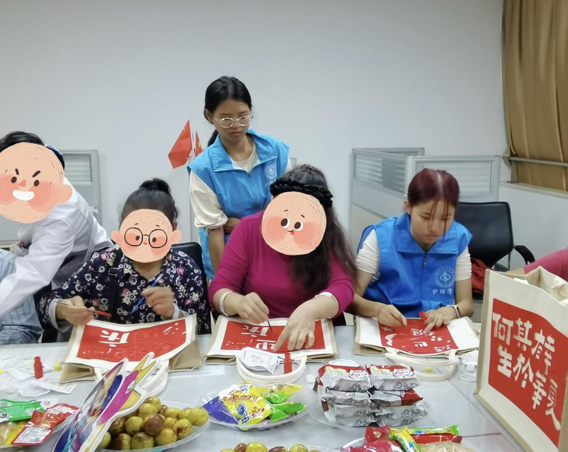 活动尾声,大家手持亲手绘制的帆布包合影,并分享感受。一位患者家属动情表示:“在病房里也能感受到节日温暖,我们更有信心战胜疾病了。”