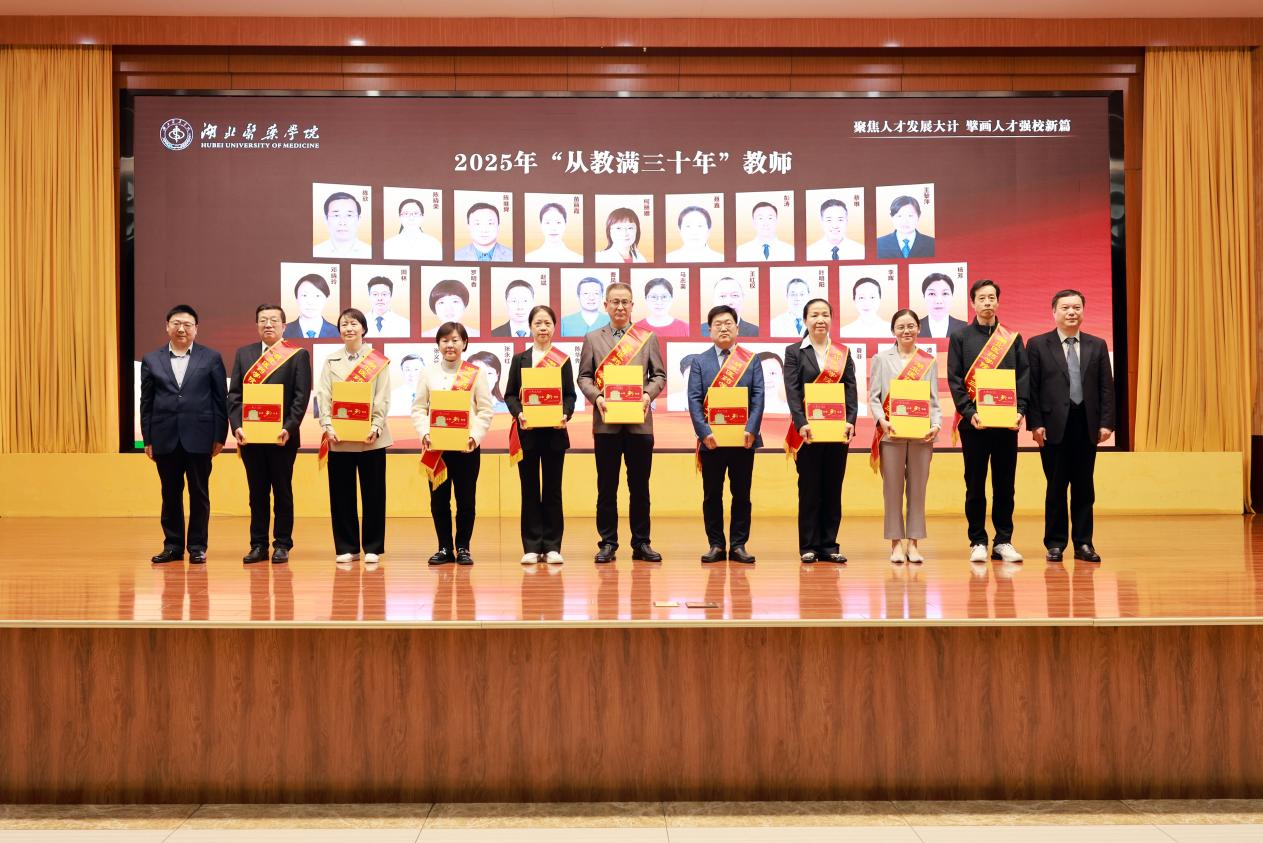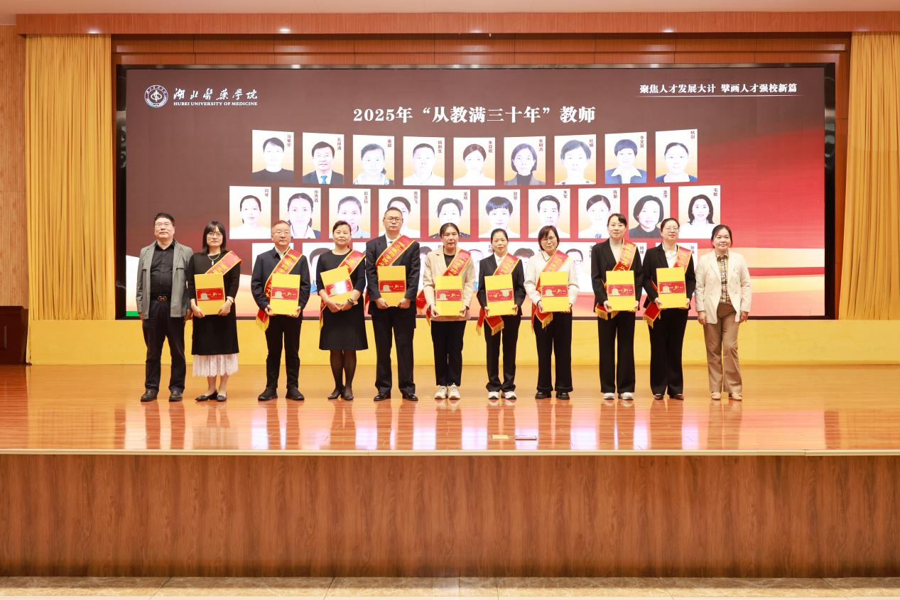 大会对学校2025年“从教满三十年”教师、省级及以上教学竞赛获奖教师、省级及以上教学质量工程项目团队以及5名“湖医药科学家”、2名“湖医药学者”获得者进行了集中表彰,现场掌声雷动,气氛庄重而热烈。