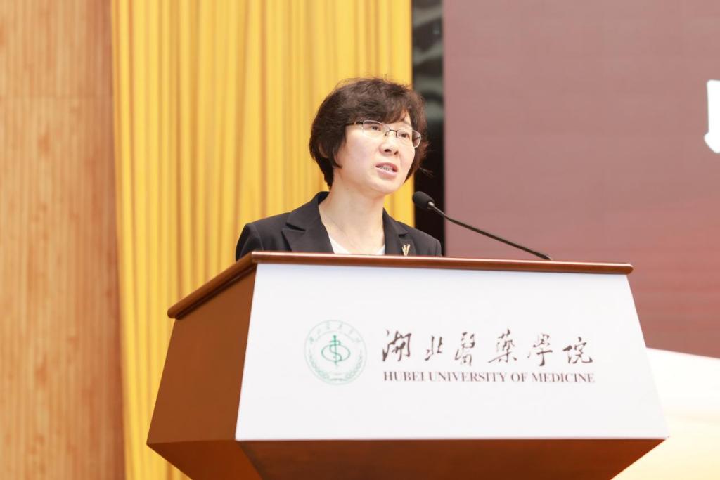 表彰仪式后,郭兴荣教授、郗雪艳教授分别代表“湖医药科学家”和“湖医药学者”发言。“如果有人问我‘大器晚成’的秘诀,我想,可以总结为三个词:热爱、协作与托举。”“科研不是孤独的远征,而是一场群体的奔赴。”“心怀敬畏,才能站稳讲台。”“想,都是问题;做,才有答案。”“使命在肩,所以勇毅前行。”两位教授分别结合自身经历,分享了科研教学道路上的感悟与经验,激励年轻教师勇于追梦、不懈奋斗。她们的发言金句频出,其中的深邃思考与真知灼见,引发了现场教师的强烈共鸣。
