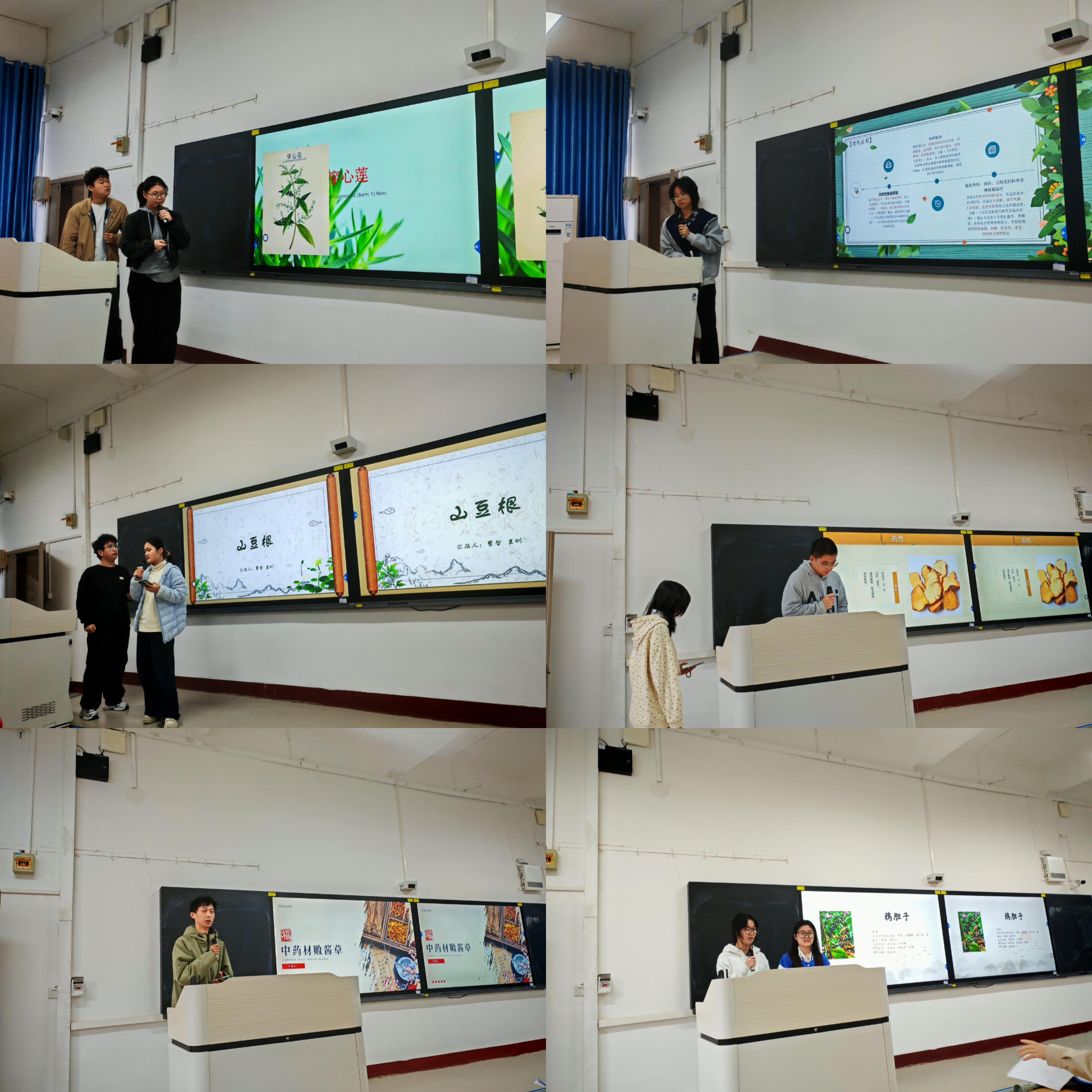 本网讯(通讯员 刘志恒)2025年10月11日上午,在《中药学》课堂上,一场别开生面的翻转课堂教学活动精彩上演。在何雪莱老师的组织下,学生们化身“小讲师”,分六组依次登台,围绕山豆根、穿心莲、马齿苋、土茯苓、败酱草、鸦胆子六味中药进行了深入浅出的讲解,充分展现了以学生为中心的教学方法。