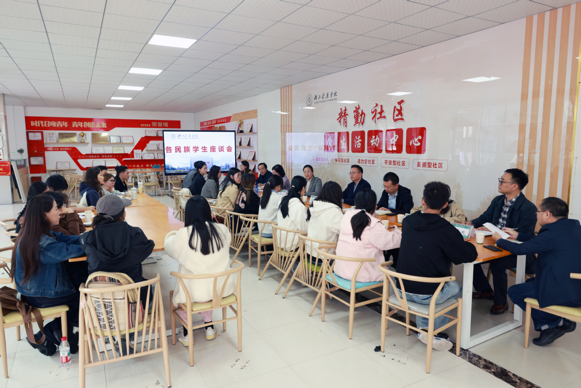 本网讯(文/欧阳妮 图/黄松鹤)10月13日下午,学校在精勤社区学生活动中心召开各民族学生座谈会。校领导谭艳、陈建龙出席会议。学校统战部、学工部、保卫部、教务处、团委、后勤处等部门负责人参会。