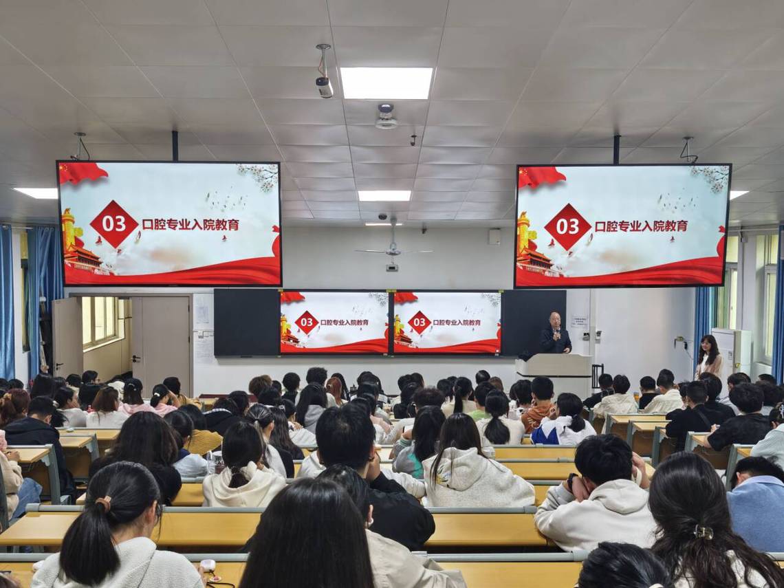 本网讯(通讯员 徐萍萍)10月13日,口腔医学院2025级新生专业教育大会在1401教室举行。口腔医学院院长冷卫东、学院党委书记秦赤子、副书记吴卉以及全院管理干部参加,大会由徐萍萍主持。