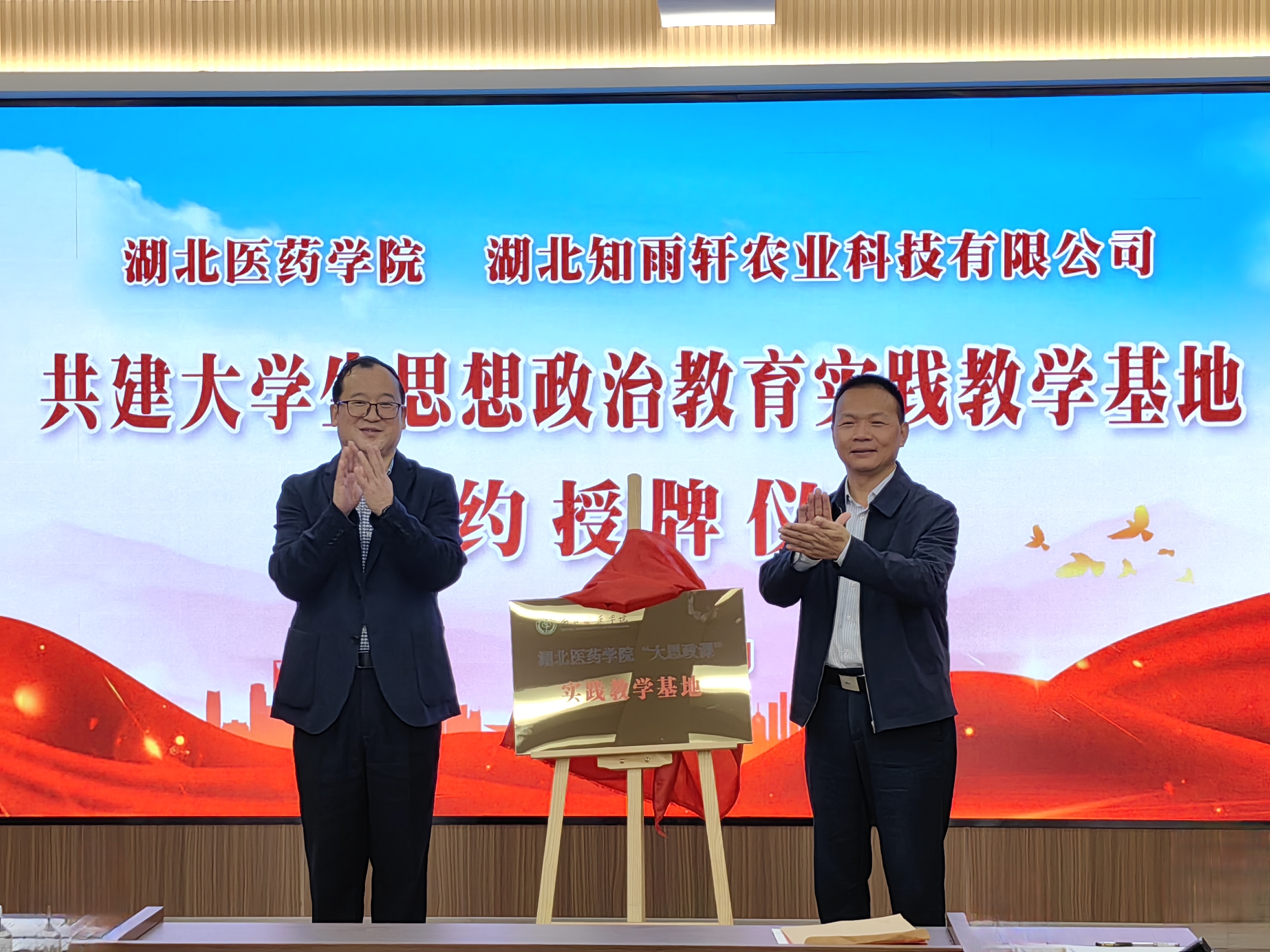 本网讯(通讯员 肖飞)10月13日,我校又一个大学生思想政治教育实践教学基地落地十堰市张湾区知雨轩·田园综合体。校党委常委、宣传部部长陈建龙,原党委书记涂汉军出席签约授牌仪式。学工处、校团委、马克思主义学院、研究生院、国际教育学院等相关单位负责人共同参加。此次合作标志着我校思政实践教学基地增至34家,为医药类院校探索“专业特色+思政实践”融合育人模式再添新平台。