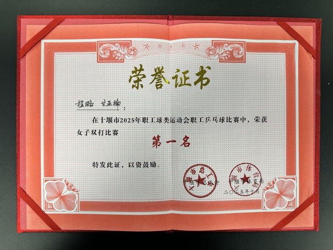 本网讯(通讯员 柯琴)值此学校建校60周年来临之际,我校教职工乒乓球队喜讯频传。10月19日,十堰市2025年职工球类运动会羽毛球、乒乓球比赛在十堰市奥体中心圆满落幕。我校代表队凭借出色的发挥和顽强的拼搏精神,在众多参赛队伍中脱颖而出,斩获多项佳绩,为学校赢得了荣誉。