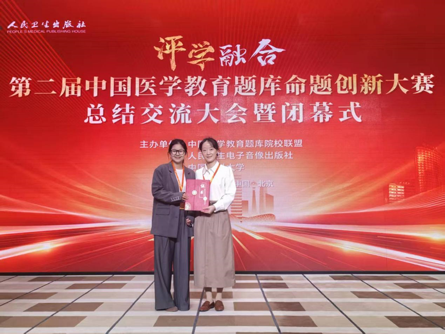 本网讯(通讯员 朱志武)10月21日,第二届中国医学教育题库命题创新大赛在北京圆满落幕。我校马克思主义学院赵翊馨老师负责的《医学心理学》课程团队,从全国 29 个省(自治区、直辖市)63 所高校的 252 个教师(团队)、1128 名参赛教师中脱颖而出,历经全国赛第一阶段网络评审、现场汇报答辩等多轮激烈角逐,最终斩获全国三等奖,为学校赢得了荣誉。
