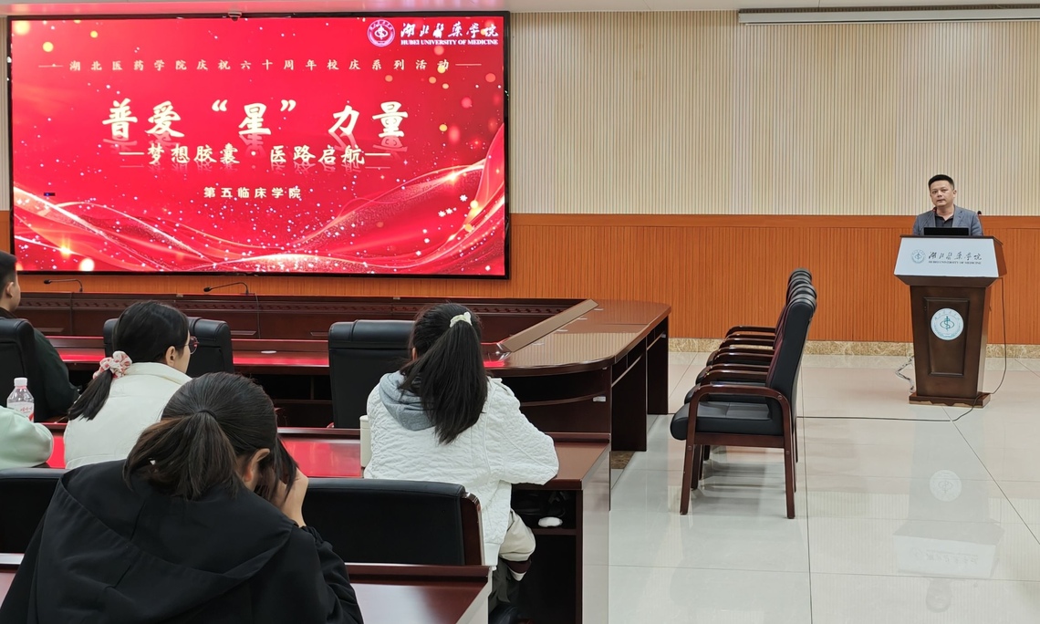 本网讯(通讯员 陈静 侯思宇)为展现学院青年学生风采、树立榜样,进一步深化学风建设,第五临床学院于10月26日在科教楼一楼多功能厅举办“普爱星力量——梦想胶囊·医路启航”活动。学院党委书记陈飞、党委副书记焦延林及各部门负责人2025级全体新生、2024级部分同学及优秀学生代表共近150人出席活动。