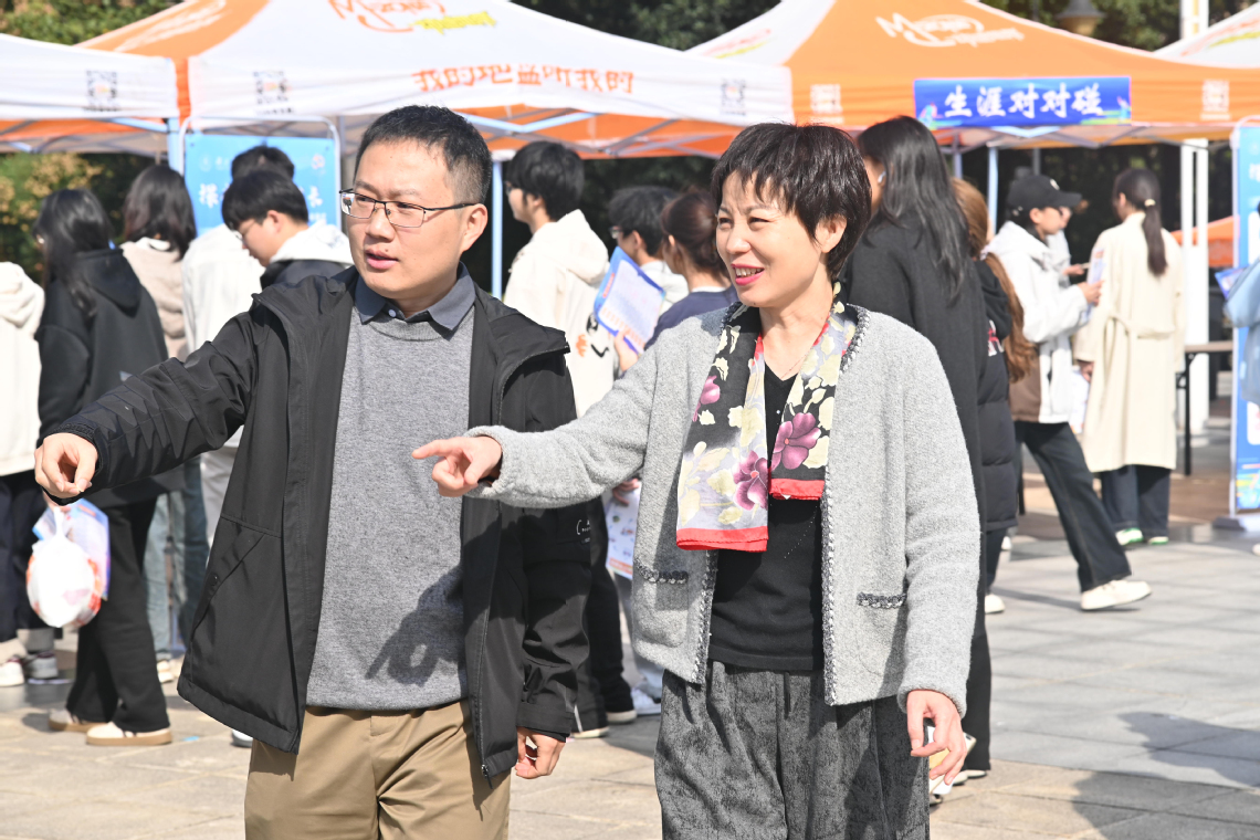 本网讯(通讯员 董艳宁)为更好地帮助学生探索职业潜能、提升职业生涯规划意识,10月25日至26日,我校招生就业工作处在文明广场成功举办了以“探索·连接·成长——你的职业未来式”为主题的生涯嘉年华大型趣味体验活动。本次活动形式新颖,内容丰富多彩,吸引了约4800名学生踊跃参与,现场气氛热烈。校党委常委、副校长严世荣出席活动,招生就业工作处处长徐秀娟、创新创业学院老师等参加活动。严世荣详细了解各活动环节的设置与开展情况,对本次活动寓教于乐的创新形式及其在激发学生生涯规划主动性方面的重要作用给予了充分肯定。