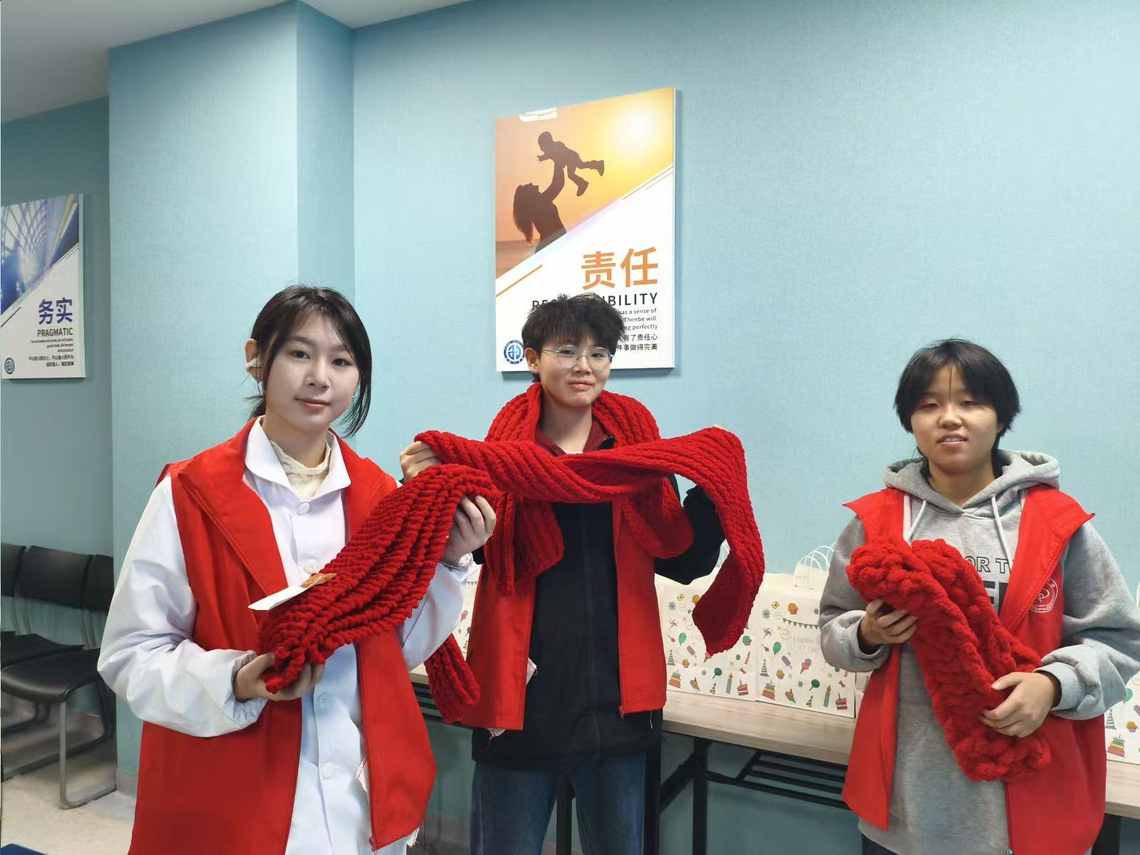 活动伊始,活力满满的舞蹈串烧瞬间点燃现场氛围。随后上演的情景剧《让骨头硬朗起来》,以贴近患者生活的真实场景演绎引发情感共鸣,更用故事化方式生动科普骨骼健康知识。志愿者们合唱的《小美满》旋律悠扬,字句传递希望,让不少患者眼中泛起暖意,重燃对生活的美好向往。趣味手指操教学环节将活动气氛推向高潮。志愿者们俯身为患者示范动作,手把手指导手腕、手指的活动要领,不仅帮助患者锻炼手部灵活性,更在轻松互动中潜移默化提升认知功能,病房里满是欢声笑语。活动尾声,志愿者们将手工围巾逐一佩戴在患者颈间,送上真挚祝福,驱散了秋日残余寒意,为病房增添浓浓温情。