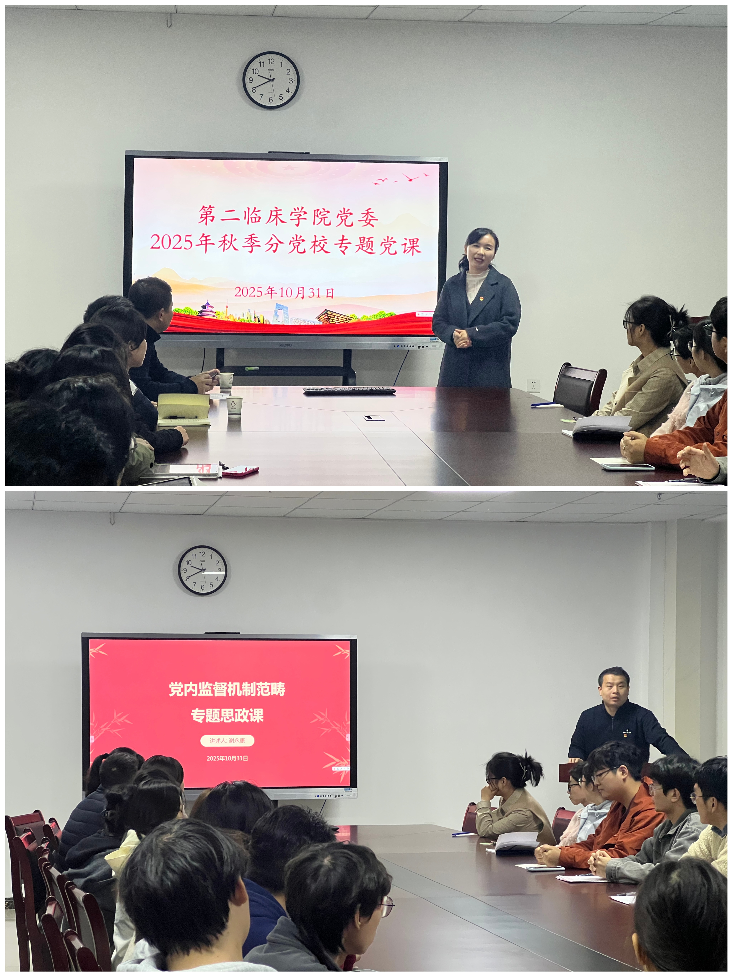 本网讯(通讯员 李占秋)10月31日晚,第二临床学院党委于东风校区举办2025年秋季分党校专题党课。本次党课特邀国药东风总医院纪委副书记谢永康担任主讲,以《党内监督机制范畴》为题,为全体培训学员带来了一场内容翔实、意义深刻的专题讲座。第二临床学院党委副书记陈立、各支部书记和全体参训学员参加此次党课。