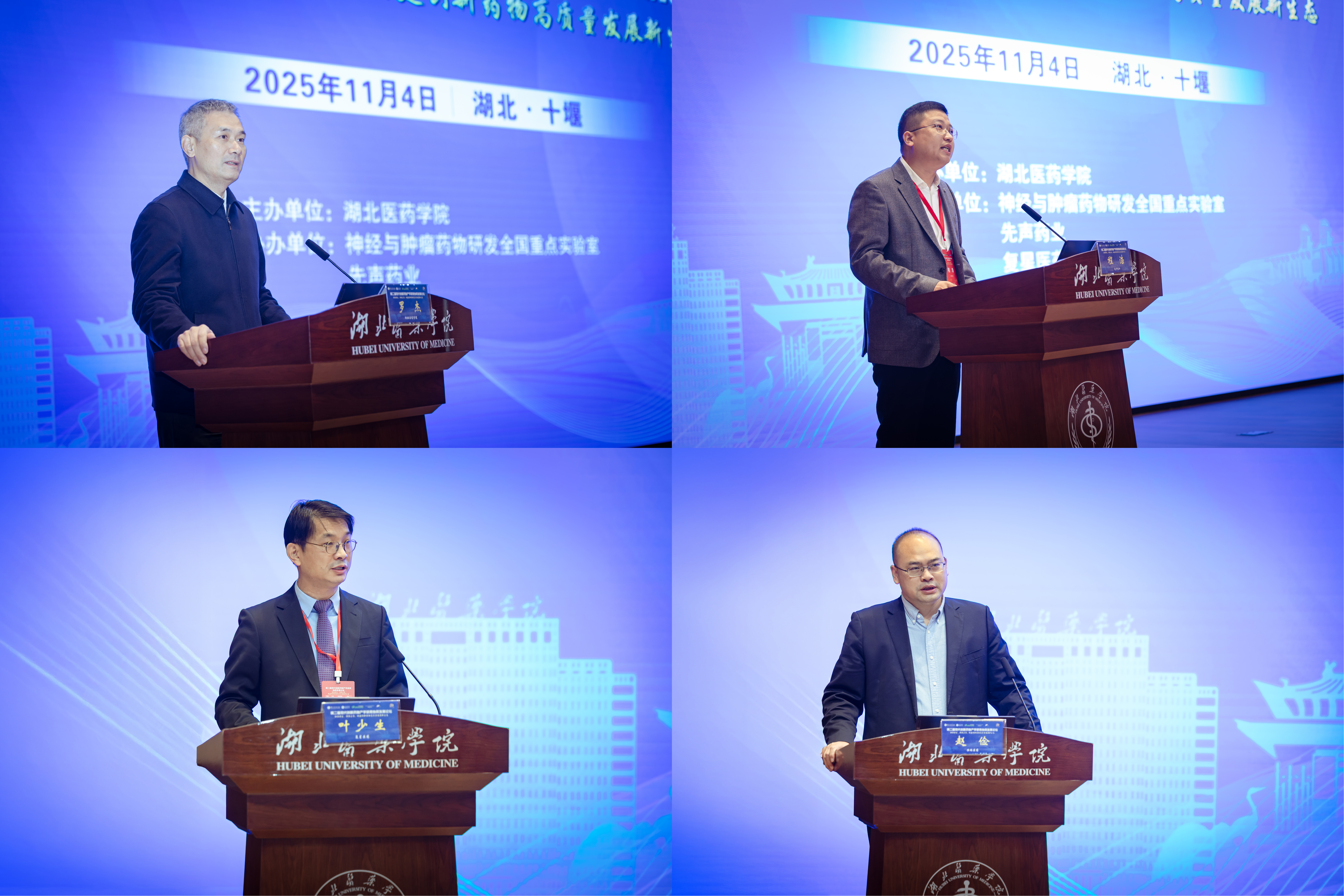 本网讯(通讯员 罗寒 何雪莱 方佳丽)2025年11月3日至5日,由湖北医药学院主办,神经与肿瘤药物研发全国重点实验室、先声药业、复星医药、恒瑞医药共同协办的“第二届现代创新药物产学研用协同发展论坛”在湖北医药学院公卫大楼学术报告厅举行。论坛汇聚了来自卫生主管部门、高校、医药企业、医院等多方代表,围绕创新药物研发、成果转化、人才培养等议题展开深入交流,共同探索产学研用协同发展新路径。