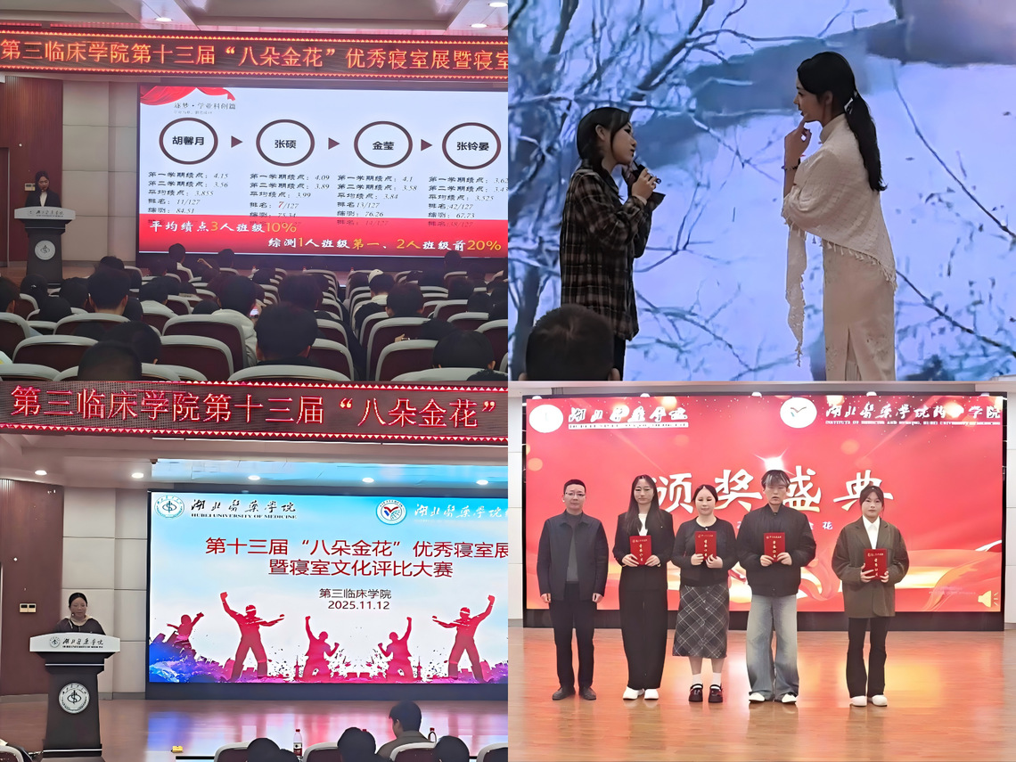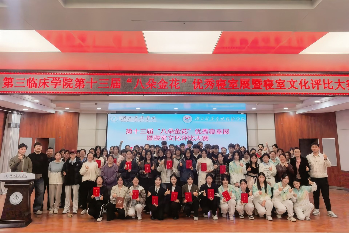 本网讯(通讯员 金莹 罗升)11月12日晚,第三临床学院在八号教学楼五楼报告厅举办第十三届“八朵金花”寝室文化评比大赛。学院党委副书记李芹、副院长李平飞、全体学工干部及学生代表参加了此次活动。