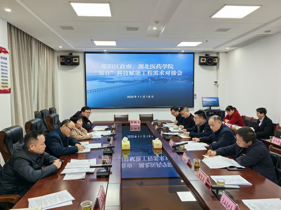 本网讯(通讯员 宋园亮)11月18日,校党委常委、研究生院院长唐俊明带队赴郧阳区开展“双百”科技赋能工程专项对接活动。科发院院长郭阳、药学院分党委书记郝新才、科发院项目办主任李健随行参与,郧阳区政府党组成员黄波,区科技和经信局党组成员、副局长王长军,以及区卫健委、区疾控中心、金水源公司、天圣药业等相关企事业单位代表共同出席座谈会,共商校地企协同创新发展路径。