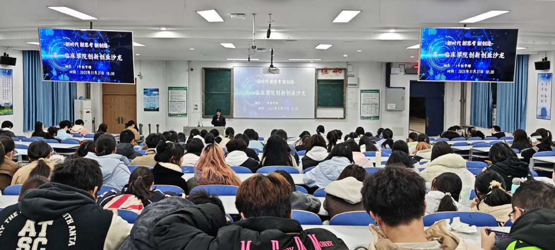 本网讯(通讯员 左凌华 陈罗思妤 代思奇)11月21日晚,第一临床学院在五号楼5111、5113教室举办创新创业沙龙。学院学工办主任孙小虎、各创新创业团队及2025级全体新生参加活动。