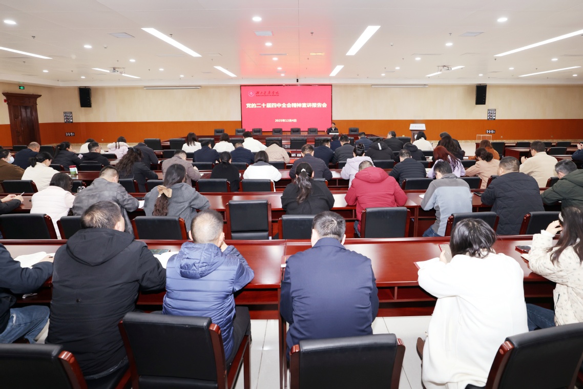 宣讲紧扣全会精神核心要义,紧密联系学校改革发展实际,围绕深刻认识全会召开的重大意义、系统领会“十四五”时期取得的重大成就、准确把握“十五五”时期在基本实现社会主义现代化进程中的重要地位,深入理解“十五五”时期经济社会发展的指导方针、主要目标、战略任务和重大举措,以及坚持和加强党的全面领导等方面,对党的二十届四中全会精神进行了系统阐释和深入解读。