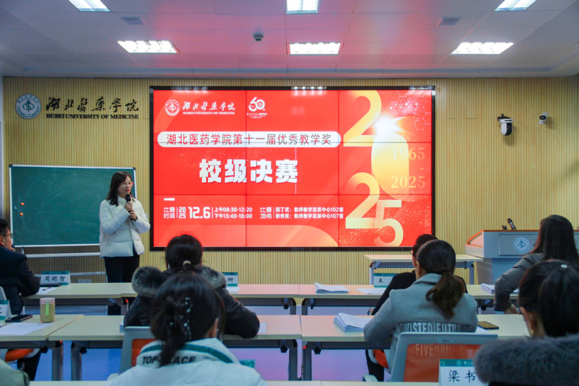 本网讯(文/朱志武 图/郑语晨)12月6日,湖北医药学院第十一届优秀教学奖评选校级决赛在教师教学发展中心顺利举办。经各参赛单位组织初赛,共计遴选推荐34名教师参加校级决赛,其中含“园丁奖”16名教师、“新秀奖”18名教师。12月4日,教师发展中心组织专家进行教案评审;12月6日,进行现场授课评审。