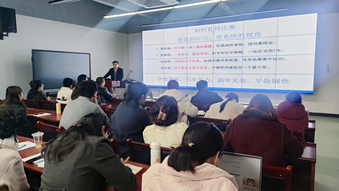 本次训练营聚焦赛事全流程设置核心课程,上午环节从校级赛事管理服务平台顶层设计入手,覆盖创新创业生态构建、项目筛选、团队搭建等内容,深入解析选题策略与金奖作品标准逻辑,帮助师生明确备赛方向;下午课程直击实战,专家结合评审经验分享网评技巧、路演定律等关键要点,以“场景化开篇-方案展示-差异化中段-团队高潮”的结构指导路演表达,切实提升备赛团队的实战能力。