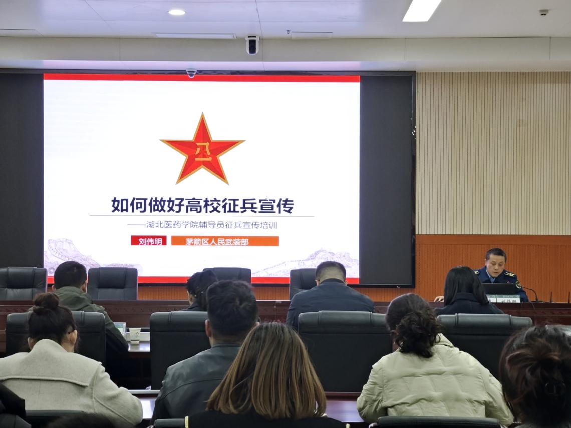 本网讯(文/李良俊王瑶瑶 图/周明显)为做好2026年学校征兵工作,强化辅导员对征兵政策的解读能力。12月10日下午,校武装部邀请茅箭区人民武装部刘伟明部长来校开展辅导员素质能力提升暨征兵政策进校园培训会。校学工部、武装部部门负责人,各学院分管学生工作副书记,全体专兼职辅导员参会。