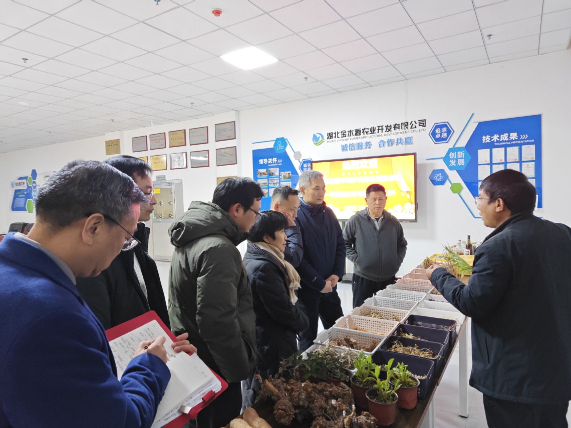 调研中,公司总经理韩明清简要介绍了公司发展历程、业务布局及核心优势,重点阐述了武当濒危药用植物种苗繁育与野生中药材人工驯化研究的创新实践。目前,公司已成功培育武当金果榄、武当金钗等多个道地药材品种,有效带动当地农户就业增收。