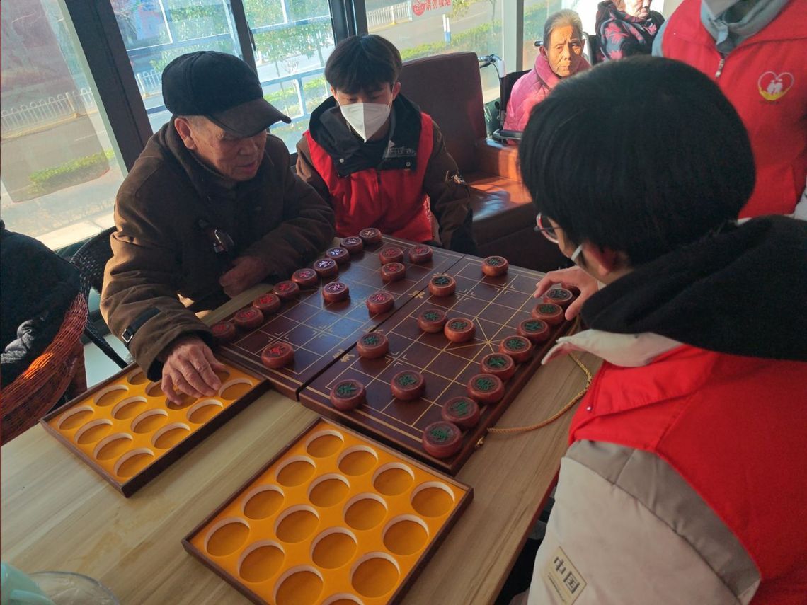 活动中,志愿者们分组开展多项服务。在棋牌互动区,志愿者与老人对弈象棋、切磋牌艺,现场气氛轻松融洽。休闲交流区内,志愿者陪伴老人聊天,倾听往事与心声,给予情感陪伴。同时,健康服务小组为老人测量血压,讲解日常保健知识,解答健康疑问,引导老人关注自身健康状况。