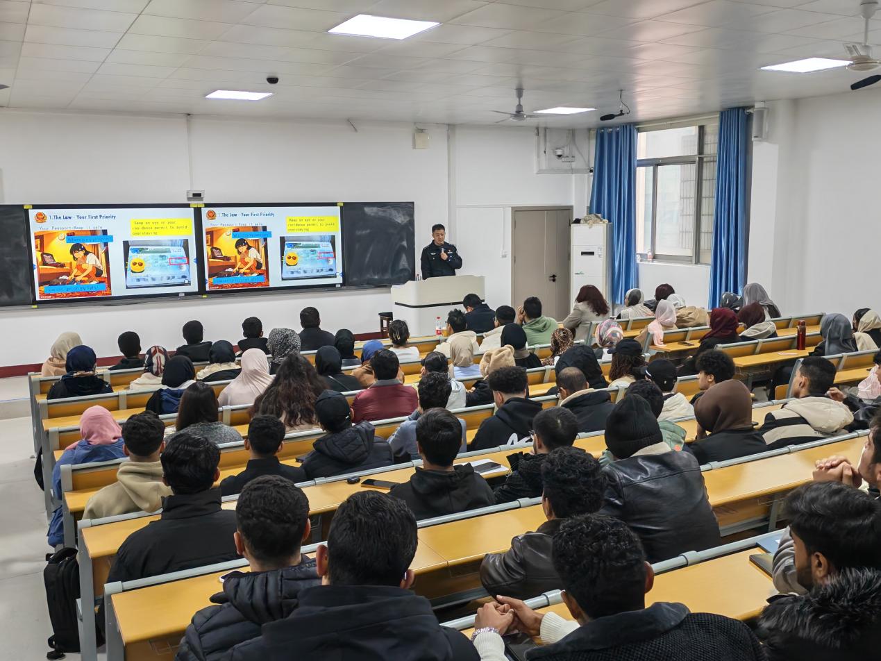 此次宣讲会内容详实、重点突出,有效提升了我校留学生的法治观念与安全意识,为他们在华安心学习、舒心生活奠定了坚实基础。国际教育学院将持续关注留学生的成长与发展,定期开展此类法律安全教育,为留学生营造更加安全、有序、和谐的学习生活环境,助力每一位留学生在中国度过充实、平安、难忘的求学时光。(审稿 杨慧)