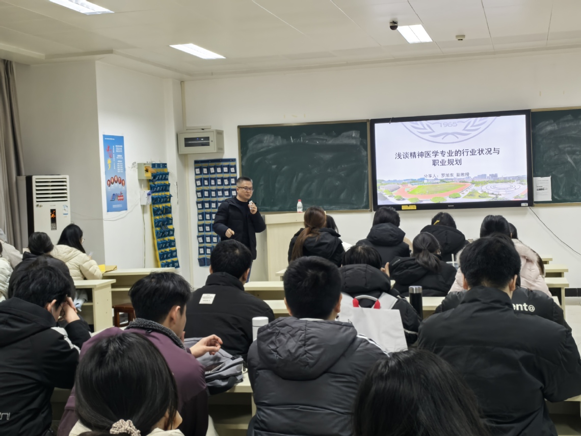 本网讯(通讯员 李晓花 车婉欣)12月23日下午,第二临床学院2023级精神医学班在9417教室举办职业规划专题讲座,班主任罗旭东副教授担任主讲。
