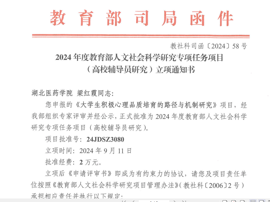 加强内涵建设,学科特色更加彰显。根据2023年湖北省大学最好学科排名,医学技术作为中国四星级学科,属中国高水平学科,位列全省第一。依托医学技术和临床医学一级学科,成功获批“生殖医学”交叉学科硕士学位点,以医学技术为主要支撑学科的生物与医药学科群获批湖北省“十四五”优势特色学科群。扎实推进研究生教育,获批1项省级研究生教改项目、2项教研项目,2 门精品示范课程。争取到教育发展基金95万元。