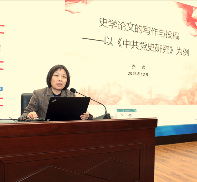 乔君老师以《史学论文的写作与投稿——以<中共党史研究>为例》为题,从中共党史与文献研究院的机构设置切入,介绍了院管期刊概况,重点解读了《中共党史研究》的发展历程、办刊宗旨、核心荣誉与栏目设置。她强调,党史研究论文写作必须坚持以科学历史观为指导,牢牢把握党的历史发展的主题主线、主流本质,这既是学术规范的核心要求,更是研究者必须坚守的政治立场与学术品格。随后,乔老师结合具体案例,详细分析了史学论文从选题立意、框架构建、史料辨析,到文字锤炼、注释规范的全流程要点,为师生提升学术研究与论文写作水平提供了极具操作性的方法指引与“路线图”。