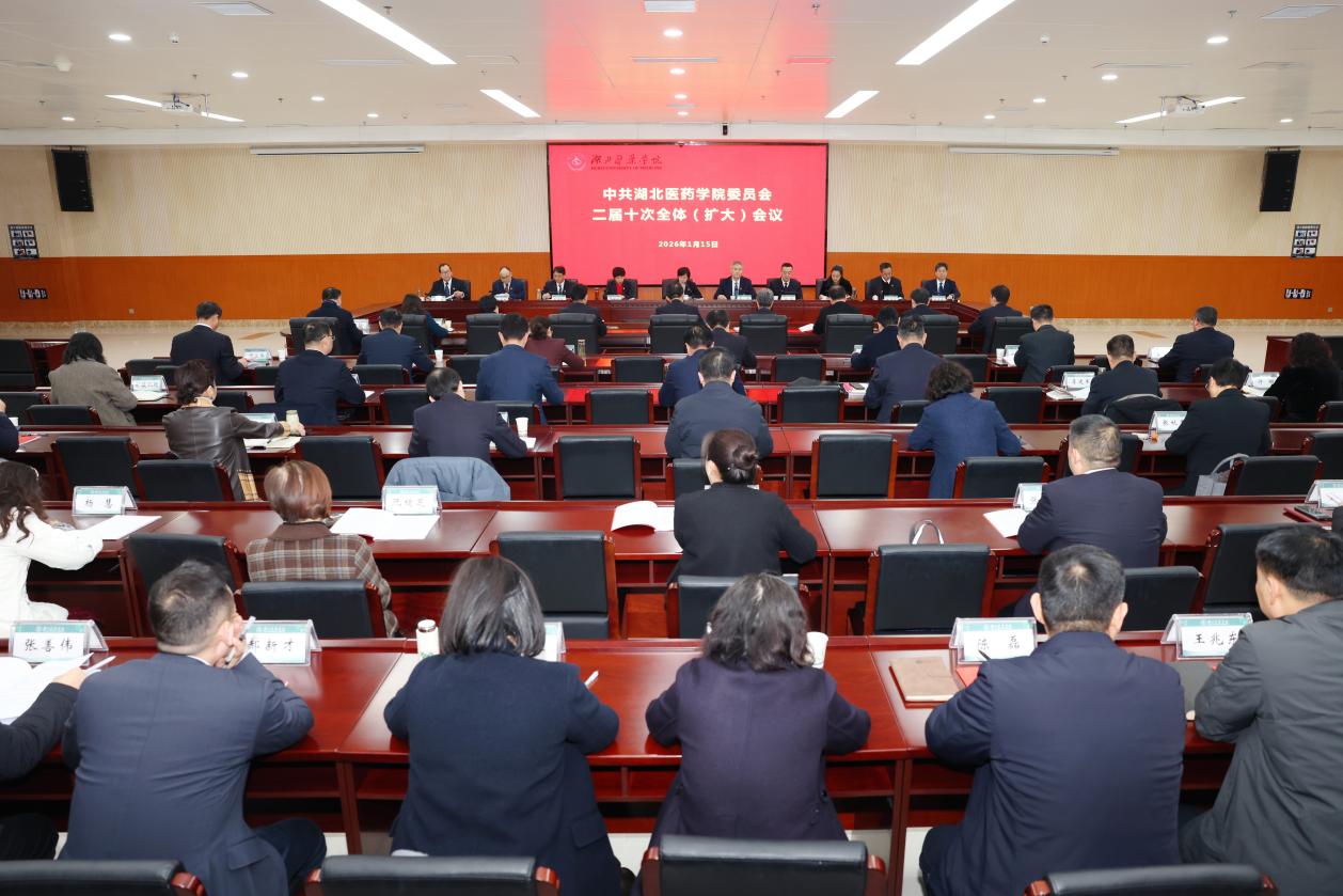 本网讯(通讯员 刘琴 郑语晨)为深入学习贯彻党的二十届四中全会精神,系统总结2025年工作成效,科学谋划“十五五”时期发展蓝图,1月15日下午,中共湖北医药学院委员会二届十次全体(扩大)会议在科教楼一楼多功能厅召开。党委书记郑丹凤主持会议,党委委员、纪委委员,附属医院党政领导,党委工作部门主要负责同志,二级党委(含药护学院党委)、直属党支部书记及校属各单位主要负责人参会,共同为学校高质量发展擘画新路径。