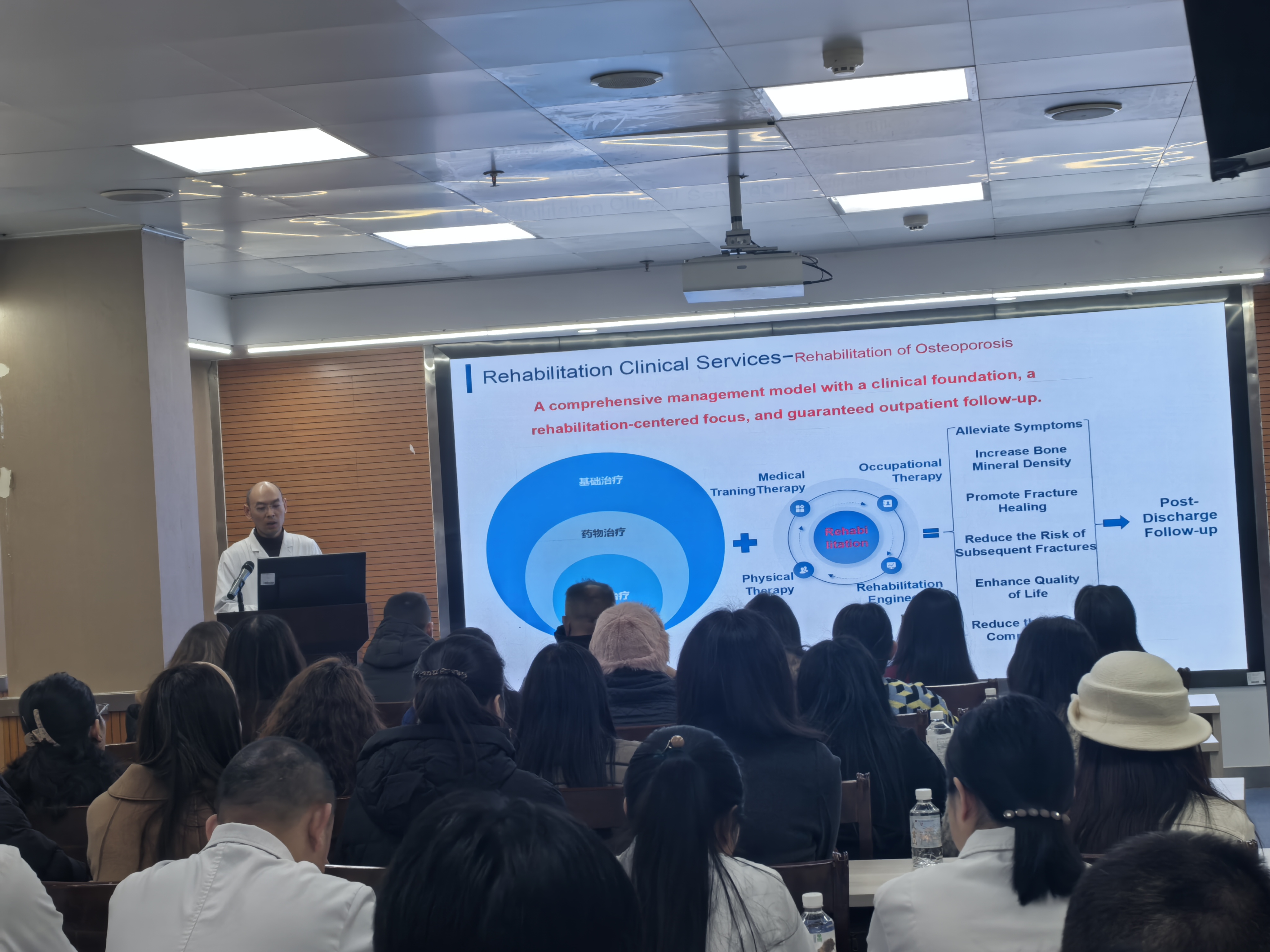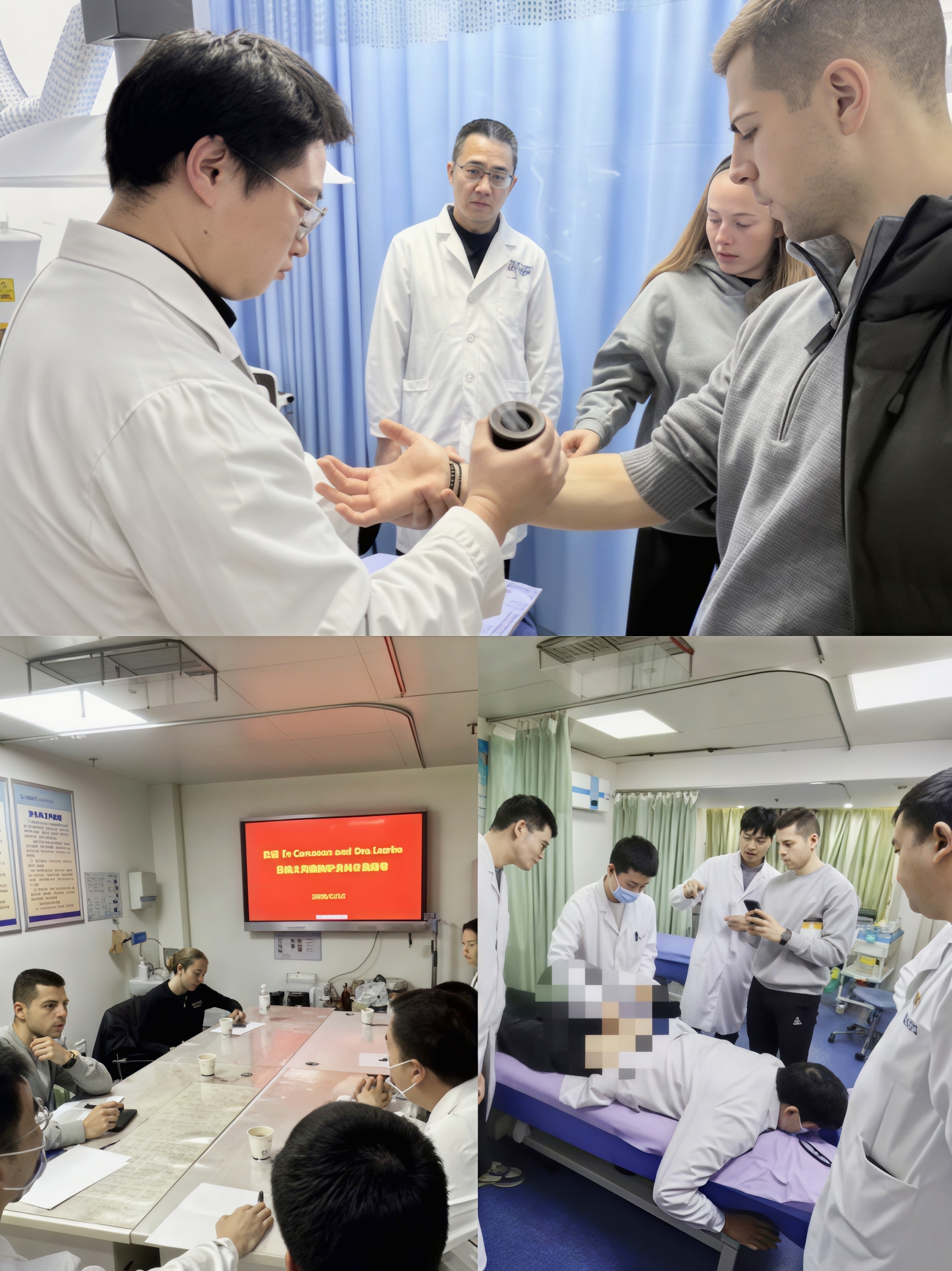 根据他们的专业背景,我校量身定制了见习环节。2名物理治疗学专业博士生和13名口腔医学专业研究生分别前往直属附属太和医院东院区和口腔病区进行临床见习。期间,东院区副院长高峰为他们举行了主题为“中西医融合康复新实践”的专题讲座,系统介绍了医院在中西医结合康复领域的研究及应用成果。直属附属太和医院石从郁博士做了题为“中国口腔医学教育发展史”的专题讲座,介绍了口腔医学发展脉络与中国口腔临床现状。