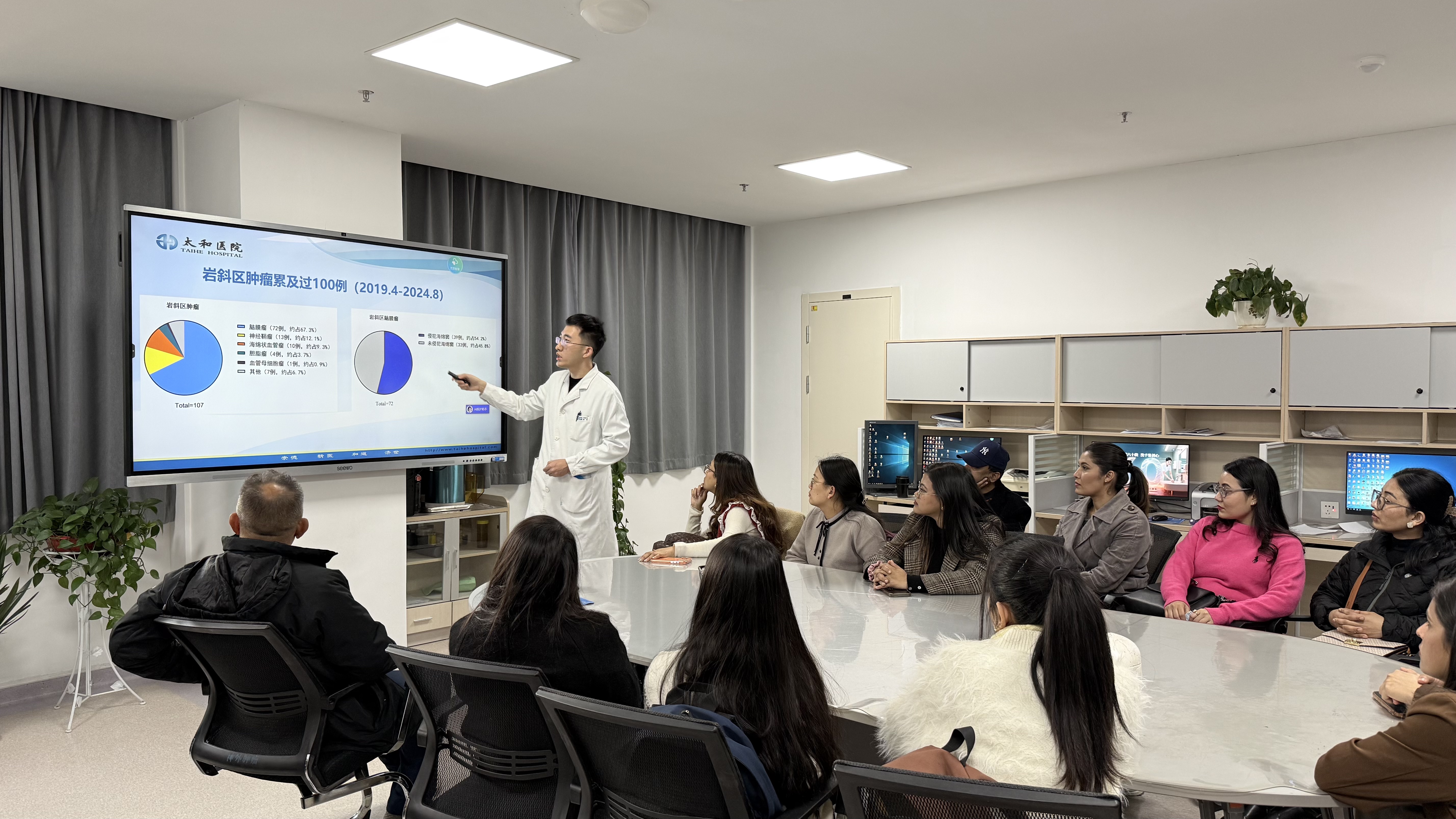 参访期间,外国青年们前往直属附属太和医院和附属国药东风口腔医院,重点走访了神经外科、口腔及康复病区,实地感受中国现代化医院的运行模式与医疗服务体系。附属医院先进的设备配置、规范操作流程以及完善的教学科研设施均给他们留下了深刻印象。
