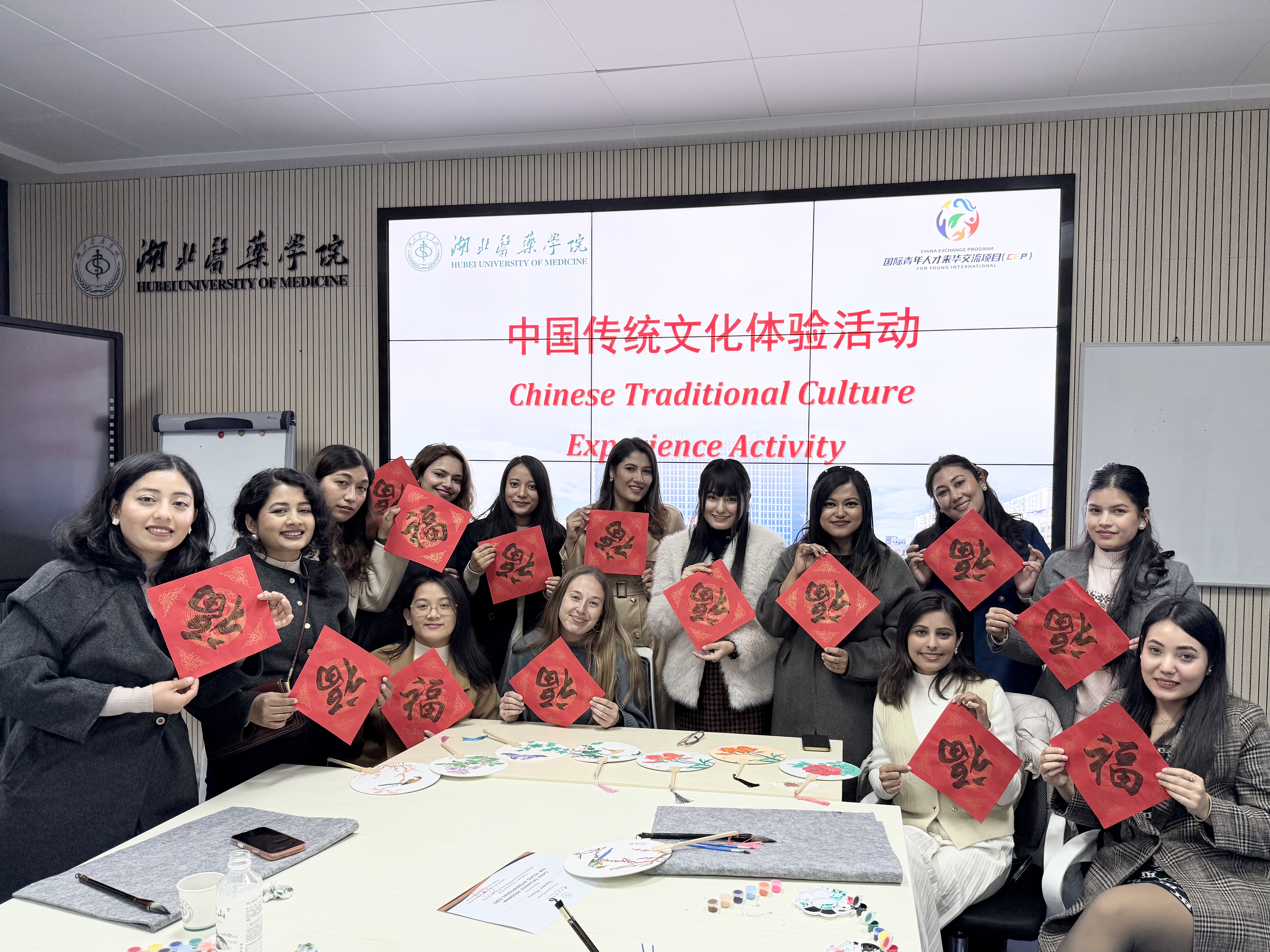 本网讯(文/周芯竹 李奕轩 图/郑语晨 董丹妮 陈志宇 赵璐 沈红敏)冬蕴生机,情暖校园。我校于1月7日至14日执行国际青年人才来华交流项目(CEP),来自西班牙、尼泊尔两国的15名外国青年齐聚湖北医药学院。在此期间,他们深入附属医院参观见习,实地了解我校医学教育教学及附属医院科室建设等情况;深度体验中华传统文化,感受地方文旅融合发展。
