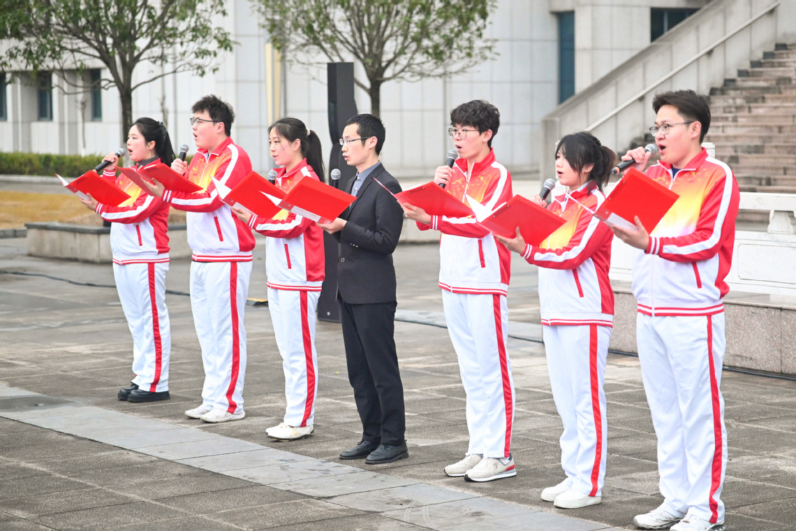 清晨的校园庄严肃穆,伴随着雄壮的《义勇军进行曲》,鲜艳的五星红旗冉冉升起,全体师生肃立注目,精神饱满。在国旗下,“湖北青年五四奖章”获得者、直属附属太和医院团委书记席世兵,“全国大学生自强之星”“向上向善好青年”贺志成,见义勇为学生代表蒋宇航、王泽静、张政淇,以及“彩虹”灾害医学救援志愿服务队队员王楹、李叶等师生代表深情诵读《雷锋日记》,用质朴的语言诠释“服务人民、奉献社会”的崇高品格,展现了湖医药青年传承雷锋精神、投身志愿服务的坚定信念。