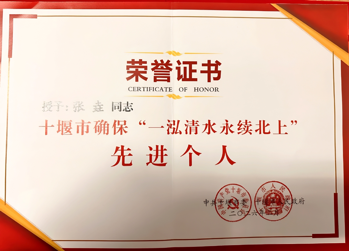 本网讯(通讯员 徐璠婧)近日,中共十堰市委、十堰市人民政府发布《关于表彰十堰市“服务支点建设”“确保‘一泓清水永续北上’”先进集体和先进个人的决定》,我校张垚同志获评“确保‘一泓清水永续北上’” 先进个人荣誉称号。