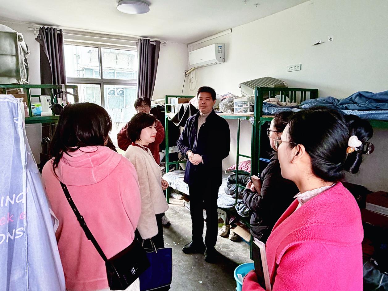 走访最后,师贞明带领老师们深入学生宿舍,实地检查寝室用电安全、消防安全措施落实情况以及物品摆放规范度,现场指出安全隐患并提出整改建议,提醒同学们严格遵守寝室管理规定,规范用电行为。同时,他呼吁同学们与室友和睦相处、互帮互助,若遇到问题或困难及时与班级辅导员沟通反馈,学院将始终作为同学们的坚强后盾,切实为实习学子的学习生活保驾护航。(审稿 师贞明)