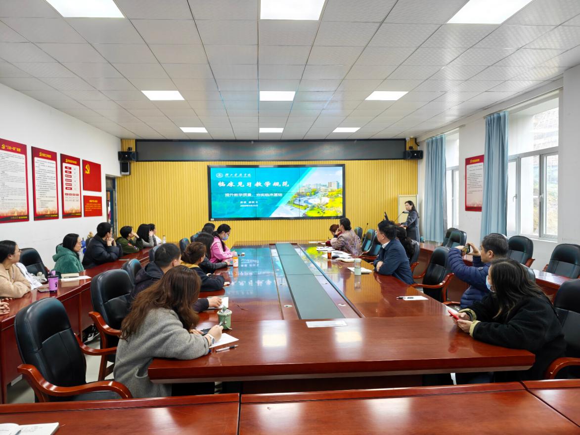会上,薛锐传达了学校“教育教学提升年”工作方案的核心内容,围绕教学氛围营造、课堂改革深化、师资队伍赋能、实践教学强化等九大工程,明确了学院见习教学的优化方向与工作要求。她以"提升教学质量,夯实临床基础"为主题,开展了临床见习教学规范培训,强调要以OBE成果导向教育理念为引领,紧扣执医资格考试与专业认证标准,推动见习教学规范提质、务求实效。