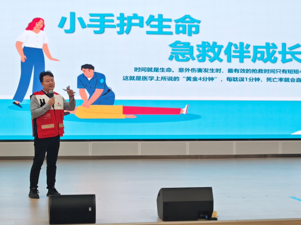 宣讲现场,团队指导老师孙小虎、丰启盈、张龙用贴近学生的案例与通俗易懂的语言,讲解心脏骤停、气道异物梗阻等校园常见突发情况的识别与处置要点,重点强调突发心脏骤停后的4分钟是抢救黄金时间,及时规范的现场急救能显著提升生存率,进一步增强师生们的急救意识与科学施救观念。