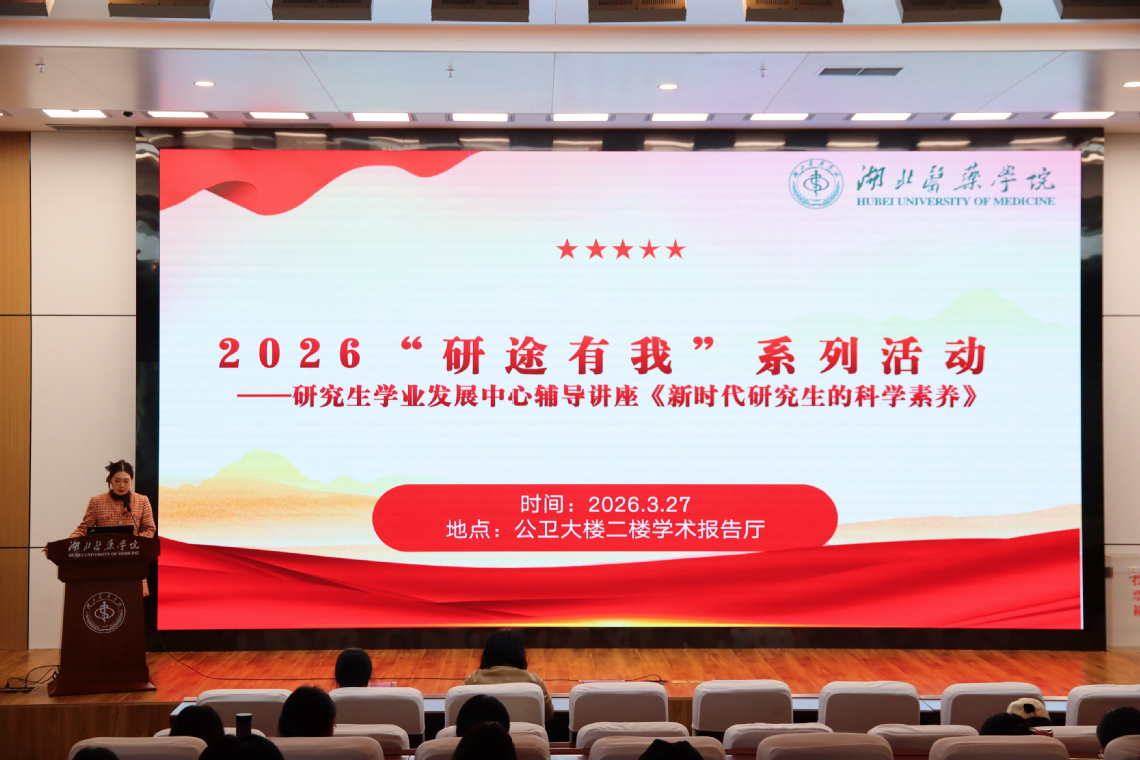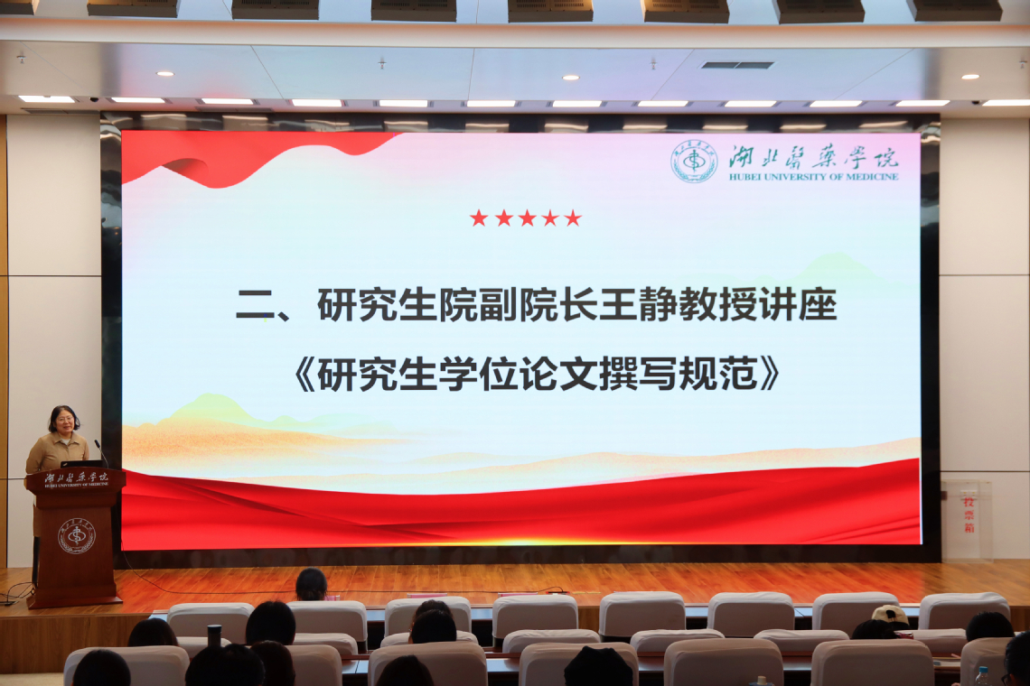 本网讯(通讯员 黄欣 潘金戈 李明)为进一步规范学位论文撰写标准,涵养严谨求实的科学精神,3月27日下午,由党委研究生工作部主办、研究生会承办的2026“研途有我”系列活动之研究生学业发展中心首场辅导讲座在公卫大楼二楼学术报告厅举办。研究生院副院长王静和基础医学院教师晋兰主讲,学院科研办负责老师及研究生班级辅导员出席活动,200余名研究生参与。
