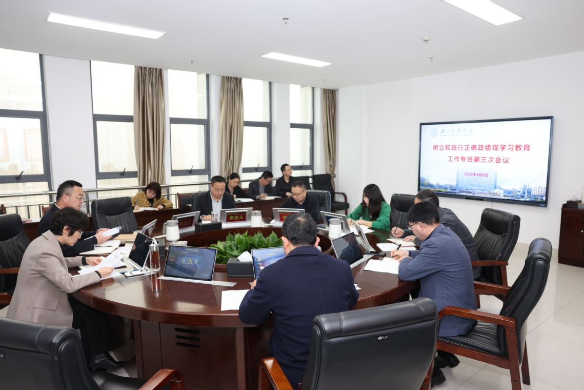 本网讯(文/赵峥 图/郑语晨)4月8日下午,学校在科教楼1707会议室召开树立和践行正确政绩观学习教育工作专班第三次会议。党委书记郑丹凤出席会议并讲话。党委副书记张海蛟主持会议。党委常委、纪委书记、监察专员徐荣,党委常委、宣传部部长陈建龙出席会议,工作专班全体成员参加会议。