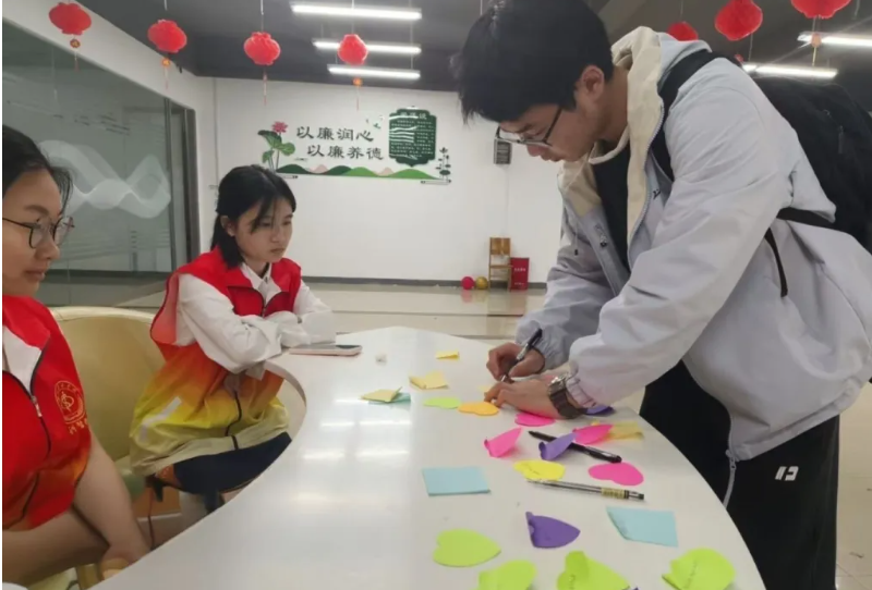 5日下午,全科医学院青年志愿者协会于精术社区开展“缅怀先烈,致敬英雄”线下主题活动,吸引学校几百余名学生参与活动,15名青年志愿者全程参与现场服务。活动现场设置两大环节,同学们首先参与“笔尖留敬意,光影记深情”环节,在便签纸上书写对先烈的致敬寄语并打卡拍照;随后参与“花朵敬英烈,铭记百年情”环节,将鲜花插入镂空花束纸板,全体肃立默哀一分钟,追思革命先烈的奉献与牺牲。