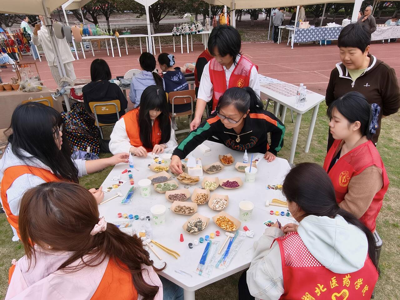 本网讯(通讯员 彭红星)4月11日,湖北医药学院药学院青年志愿者协会赴湖北工业职业技术学院南区操场,参与“樱遇武当・非遗新生”四校联动非遗创新手作市集活动。本次活动以中药文创为载体,推动中医药文化、武当地域文化与非遗技艺深度融合,吸引众多高校师生与市民驻足体验。