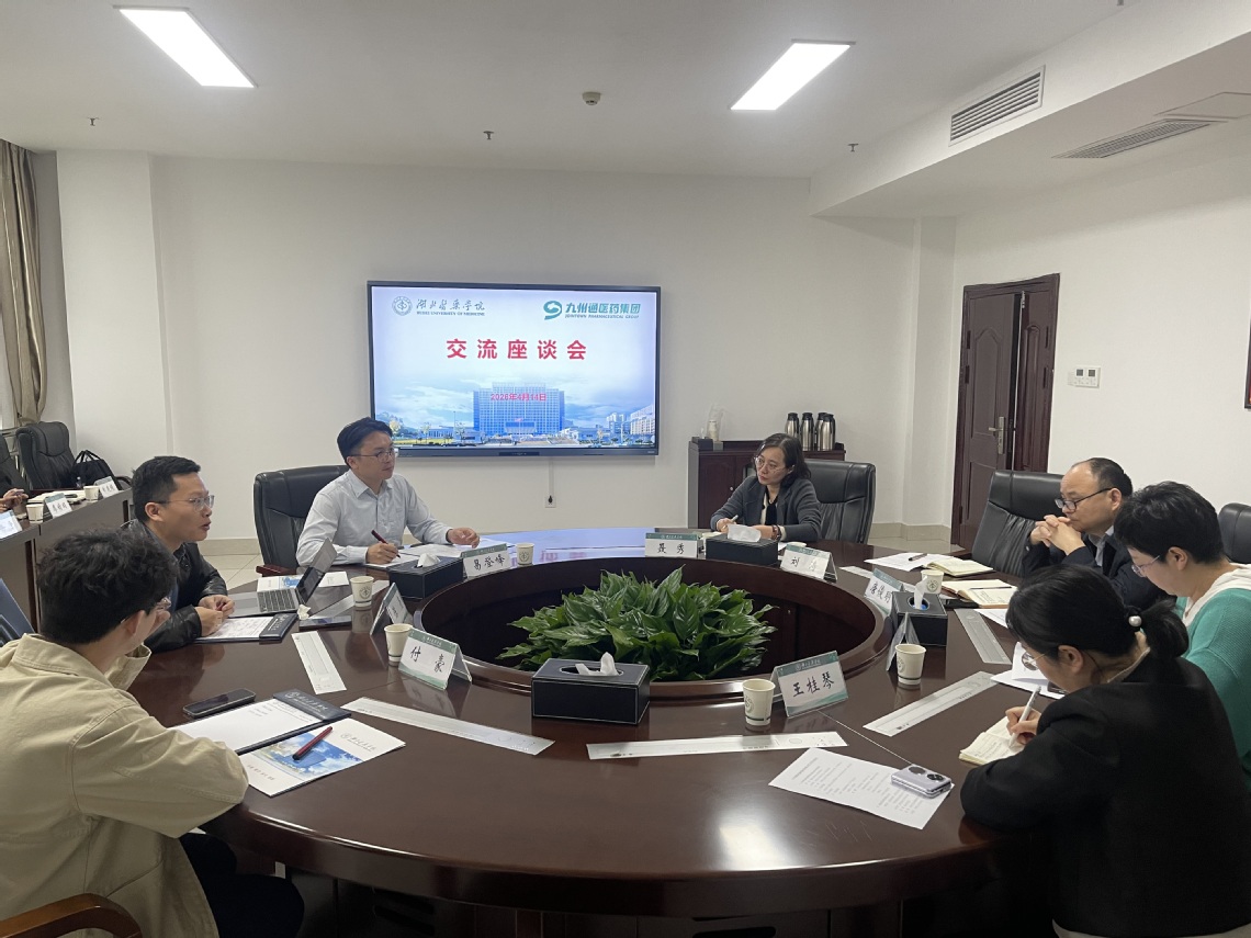 唐俊明对九州通一行的到来表示热烈欢迎,对集团给予学校的关注和支持表示衷心感谢,围绕学校概况重点介绍研究生培养和学科与专业建设情况。陈亮对九州通集团的业务板块,人才梯队,校企合作等方面情况做了重点介绍。双方围绕学生实习就业、项目课题合作、产业学院建设等方面进行了深入探讨,并形成了初步合作意向。