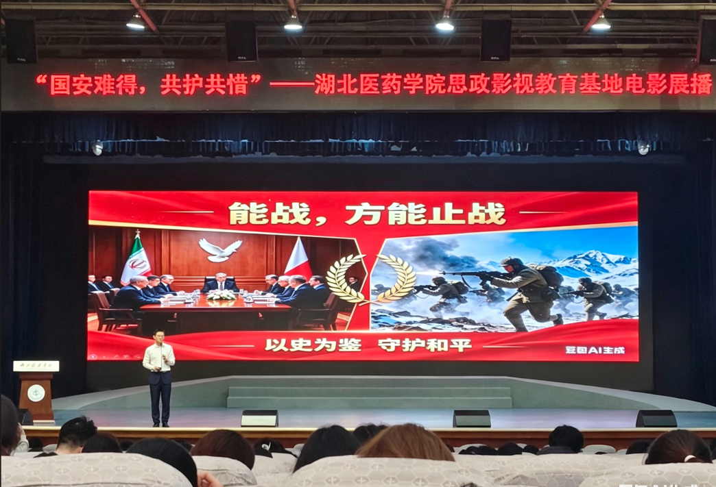 本网讯(通讯员 郭俊 张雨涵)今年4月15日是第十一个全民国家安全教育日。为深入贯彻总体国家安全观,湖北医药学院思政影视基地于4月14日晚在学子会馆三楼举办“国安难得,共护共惜”思政观影活动,活动设主题宣讲、经典重温、红色观影三个环节,共吸引500余名学生参与,通过沉浸式观影与现场教学,引导青年学子深入理解总体国家安全观。