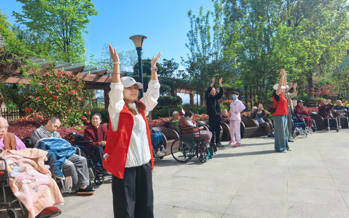 活动现场暖意融融,志愿者们结合老年人的身体特点,精心设计了多个互动环节。活动伊始,志愿者们带领老人们开展“怀旧律动操”,围绕颈部放松、肩部舒展、扩胸伸展、腰部轻转等舒缓动作,耐心指导老人们活动筋骨、舒缓身心。趣味手势舞环节,志愿者们选取《春天的祝福》《红山果》等旋律轻快、传唱度高的经典曲目,与老人们围坐成圈,手把手地教授手势动作。“巧手传情”环节中,志愿者们与老人们围坐在一起,共同制作爱心折纸。活动尾声,志愿者们与老人们围坐谈心,认真聆听老人们讲述过往的人生故事、分享生活中的点滴趣事,用真诚的陪伴温暖着每一位老人。