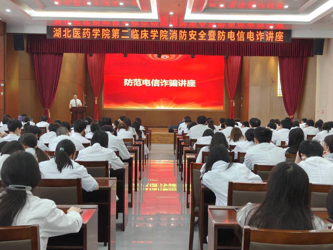 本网讯(通讯员 李占秋)为帮助即将实习学生系统掌握消防应急技能,提升求职与社会生活中的反诈防骗能力,4月16日下午,第二临床学院在东风校区面向2022级全体即将实习的学生举办了一场消防安全暨防范电信诈骗专题讲座。活动邀请国药东风总医院保卫科李全鹏与学校保卫处马越联合主讲,第二临床学院党委副书记陈立和辅导员老师出席讲座。