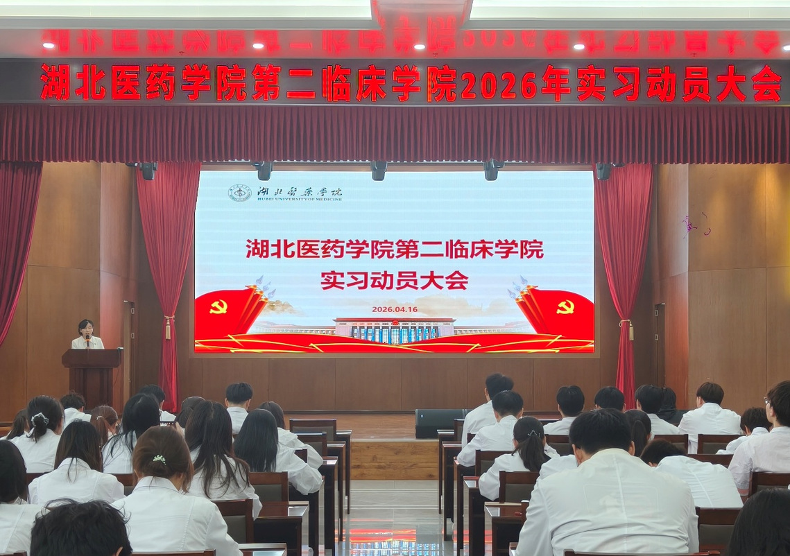 本网讯(通讯员 尚静)为明确实习目标、强化安全意识、助力医学生顺利完成从理论学习到临床实践的角色转变,4月16日下午,第二临床学院在附属国药东风总医院科教科报告厅召开2026年实习动员大会。学院院长魏涧、学院党委副书记陈立、教学办、学工办老师及全体2026级实习生参加会议,会议由陈立主持。